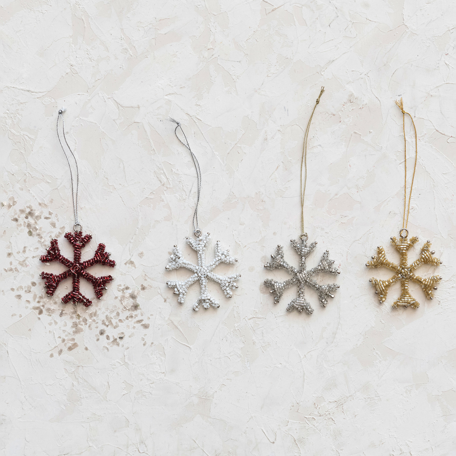Glass Bead Snowflake Ornament, 4 Colors