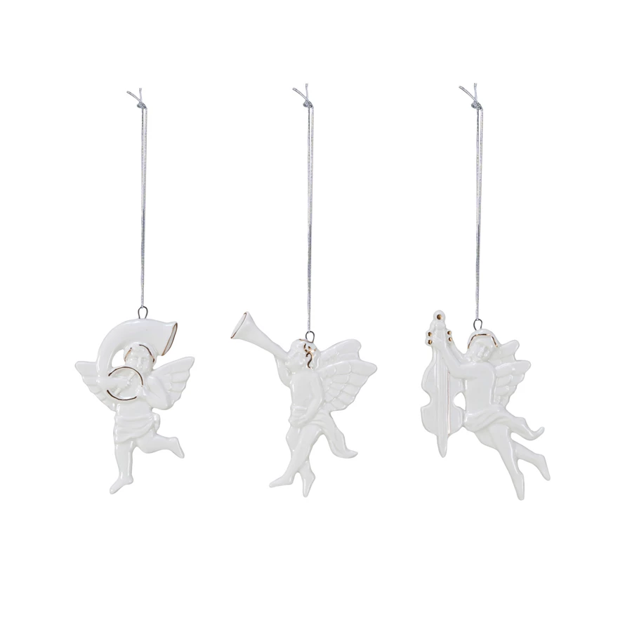 Catalog Name: 4-1/2"H - 5"H Stoneware Two-Sided Cherub Ornament w/ Musical Instrument & Gold Electroplating, White, 3 Styles ©