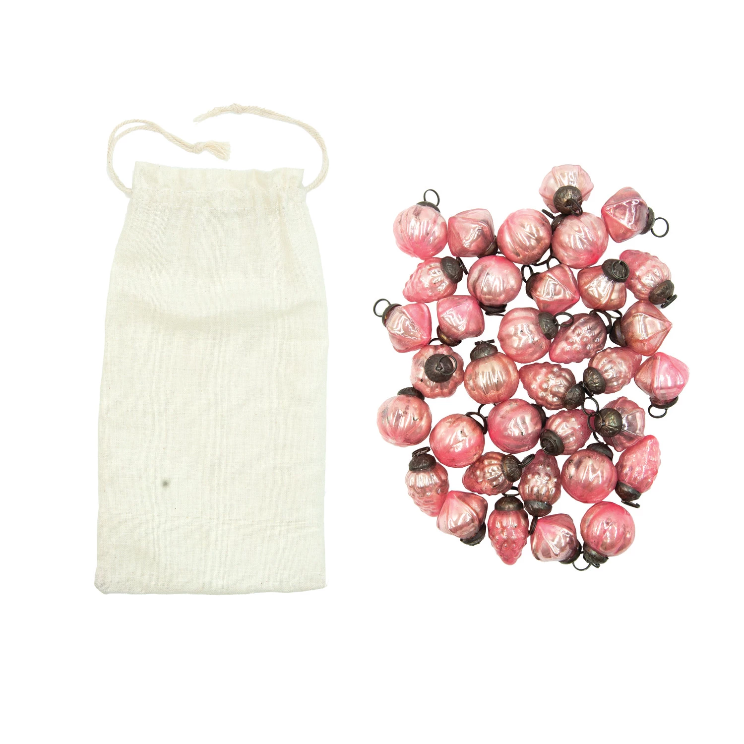 Catalog Name: 1"H Embossed Mercury Glass Ornaments in Muslin Bag, Pink, Set of 36