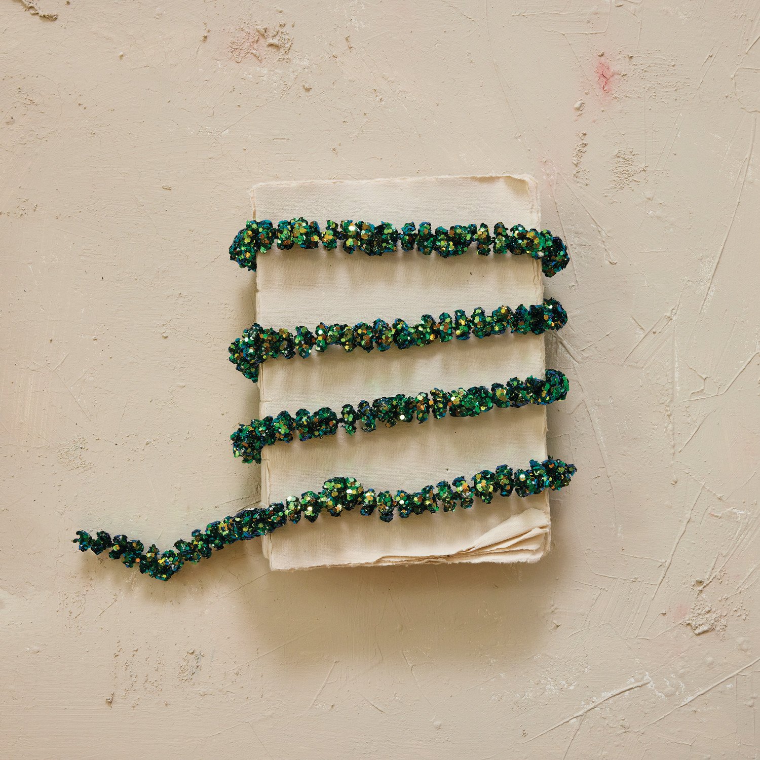 72"L x 3/4"H Foam & Glitter Ball Garland, Iridescent Finish, Green