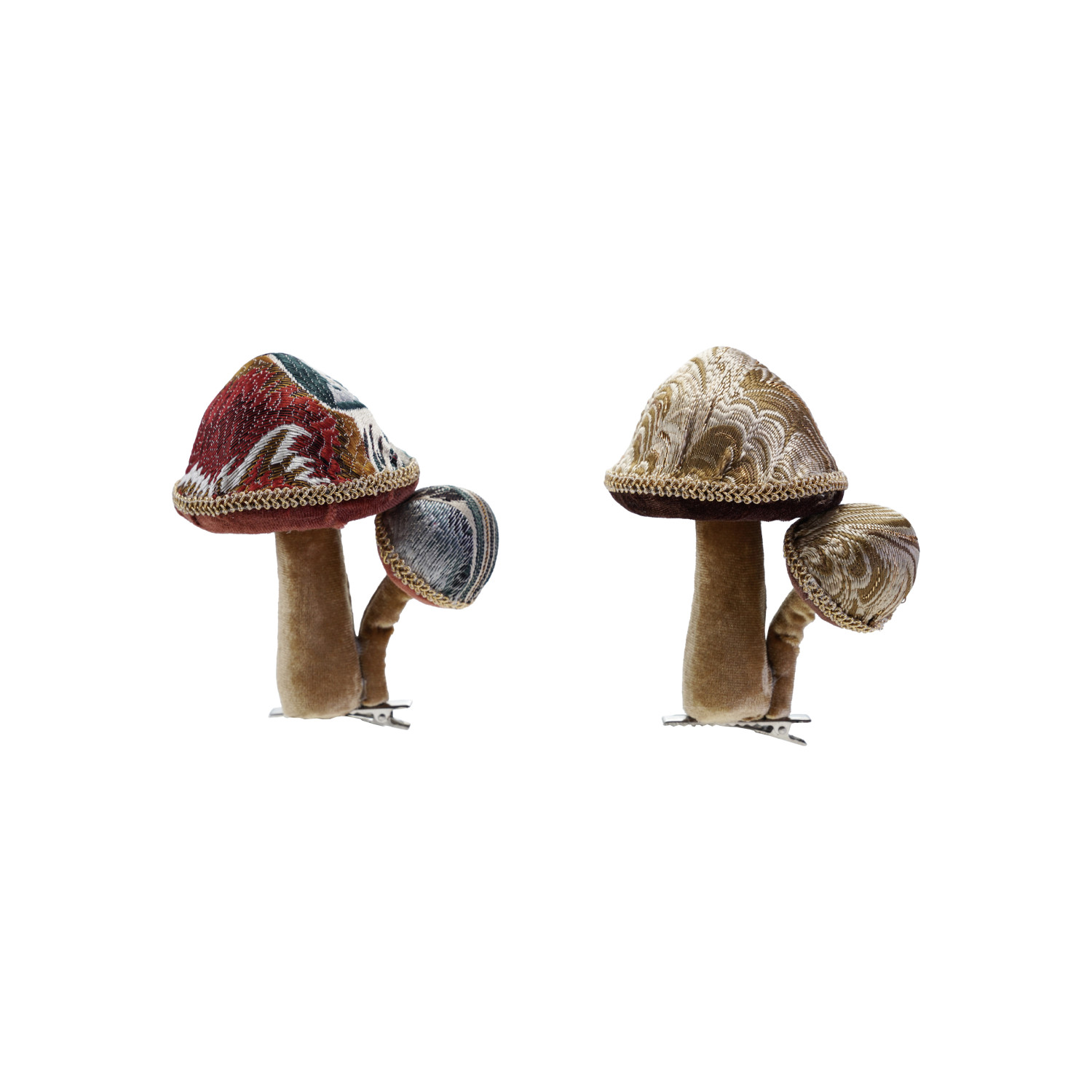 Fabric Jacquard & Velvet Mushroom Clip-on Ornament, 2 Styles