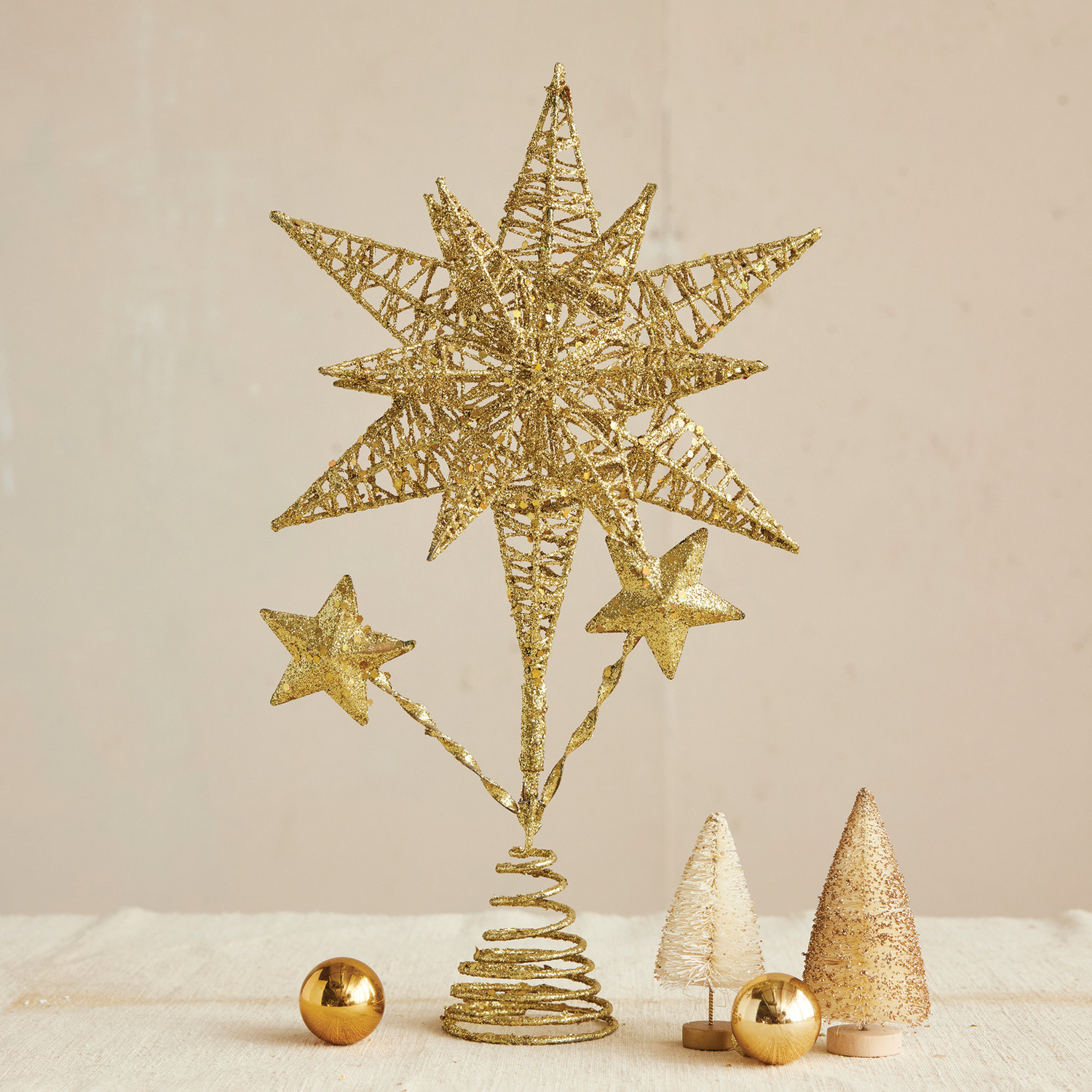 Metal Star Tree Topper, Gold Glitter Finish