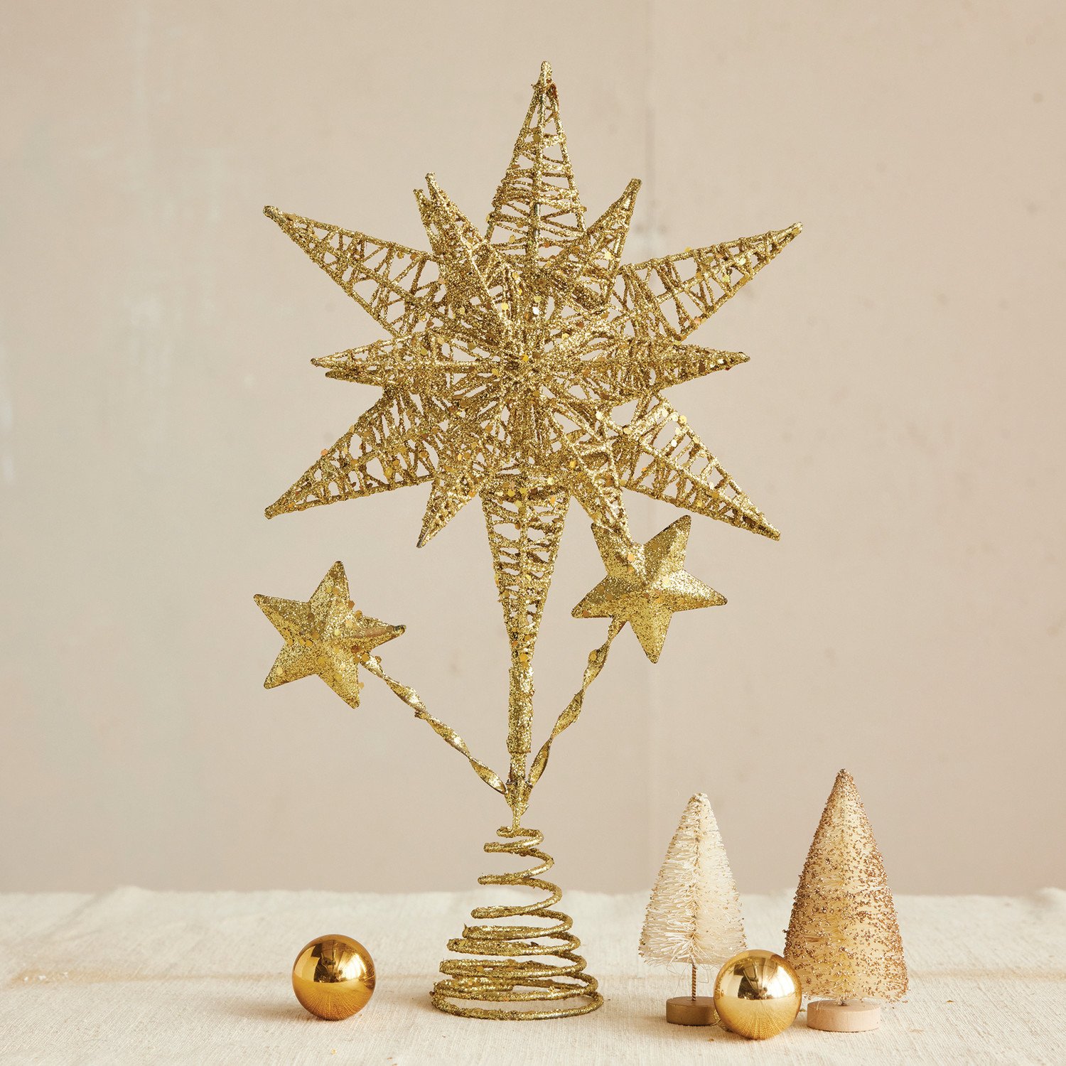 Catalog Name: 9-1/4"L x 3-1/2"W x 15"H Metal Star Tree Topper, Gold Glitter Finish