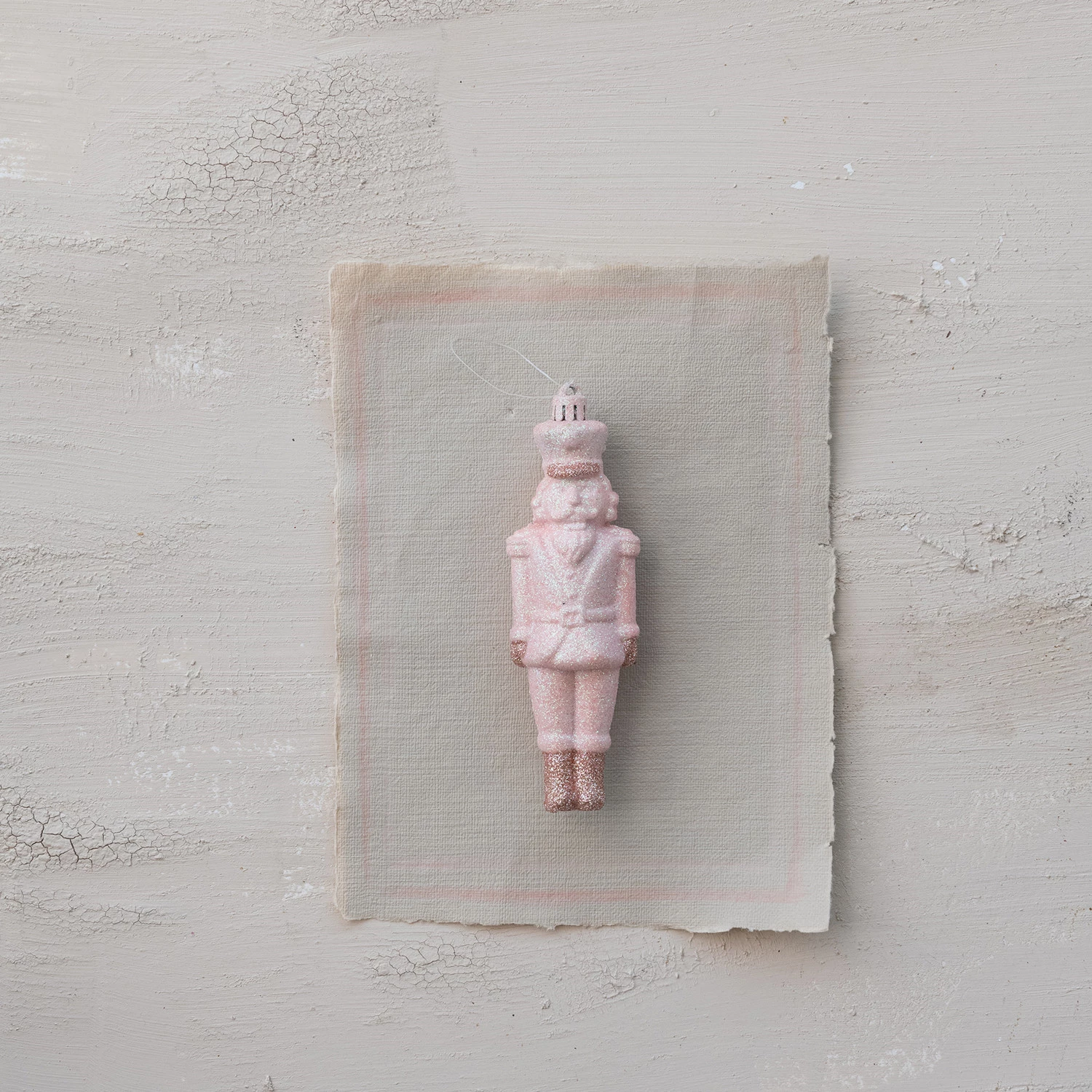 6"H Plastic Soldier Ornament, Pink Glitter Finish