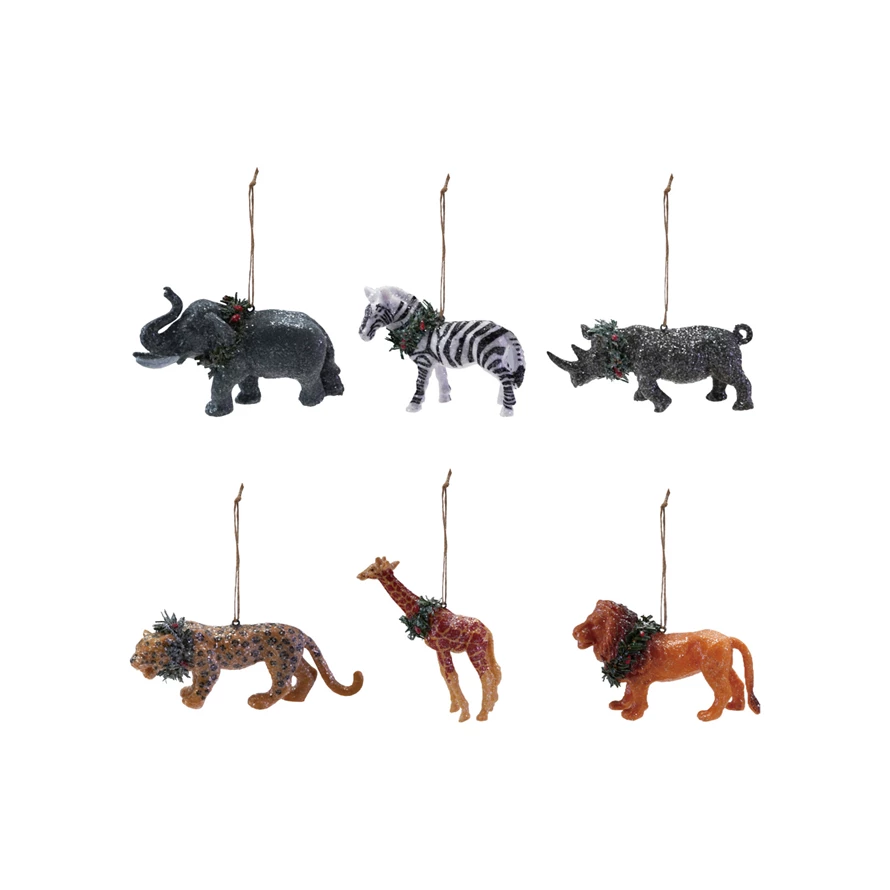 Plastic Safari Animal Ornament with Wreath with Sugar, 6 Styles