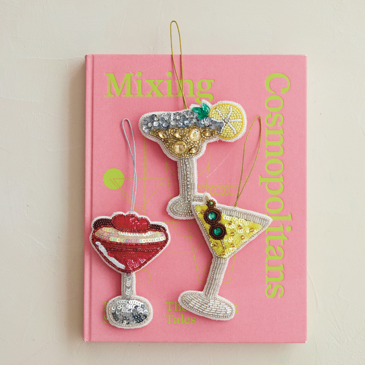 Handmade Beaded Fabric Cocktail Ornament with Embroidery & Sequins, 3 Styles