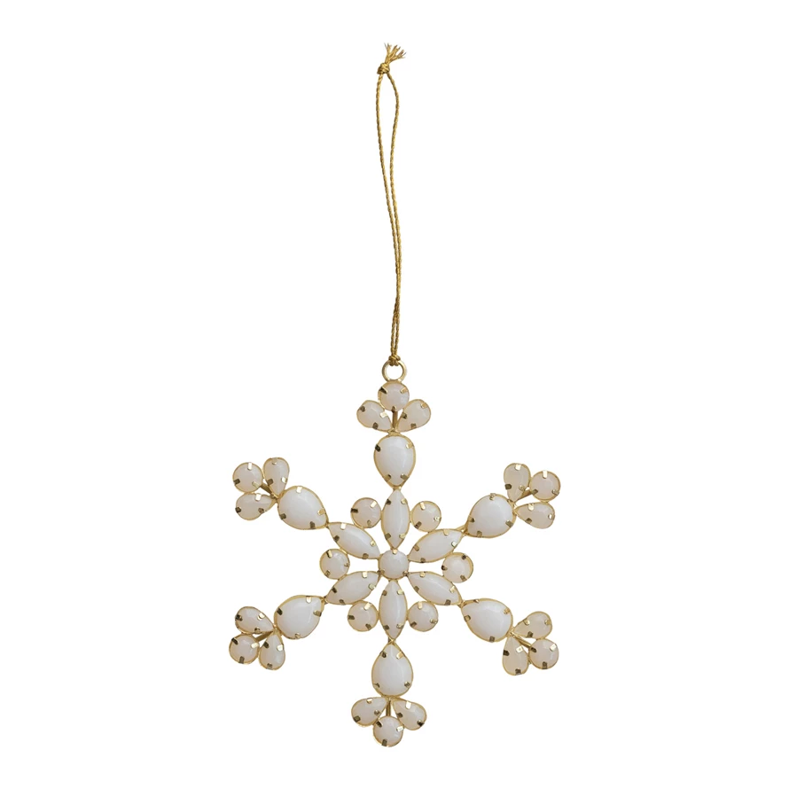 Catalog Name: 5"H Handmade Acrylic Jewel & Metal Snowflake Ornament, Ivory Color & Gold Finish