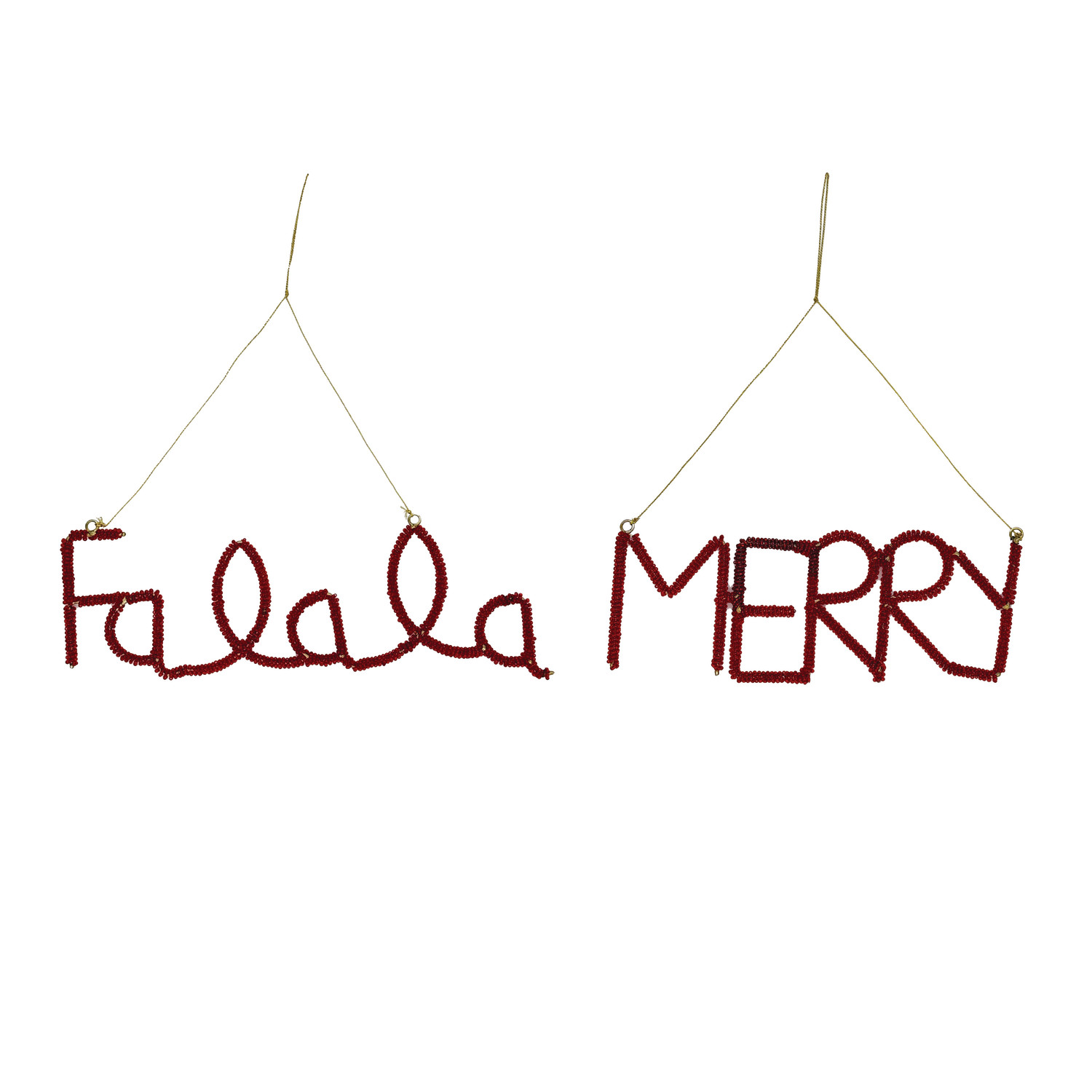 Wire & Glass Beaded Holiday Word Ornament, Red, 2 Styles