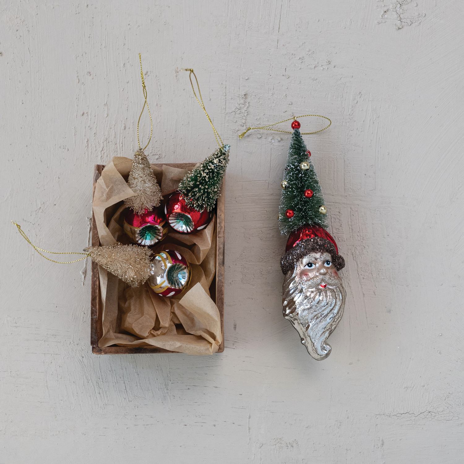 Mercury Glass Ball Ornament with Sisal Bottle Brush Tree, 3 Styles