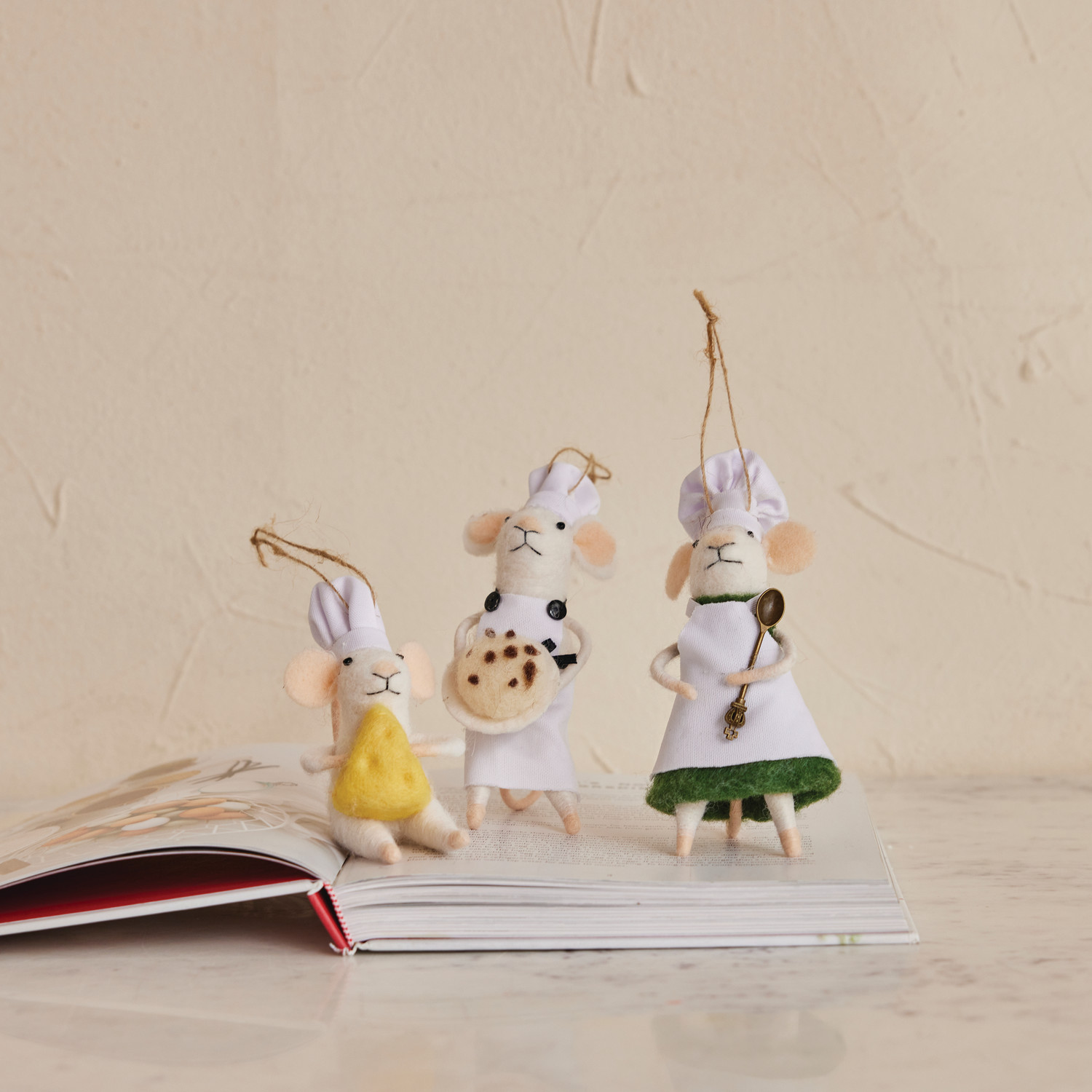 4-3/4"H - 6"H Handmade Wool Felt Chef Mouse Ornament, 3 Styles