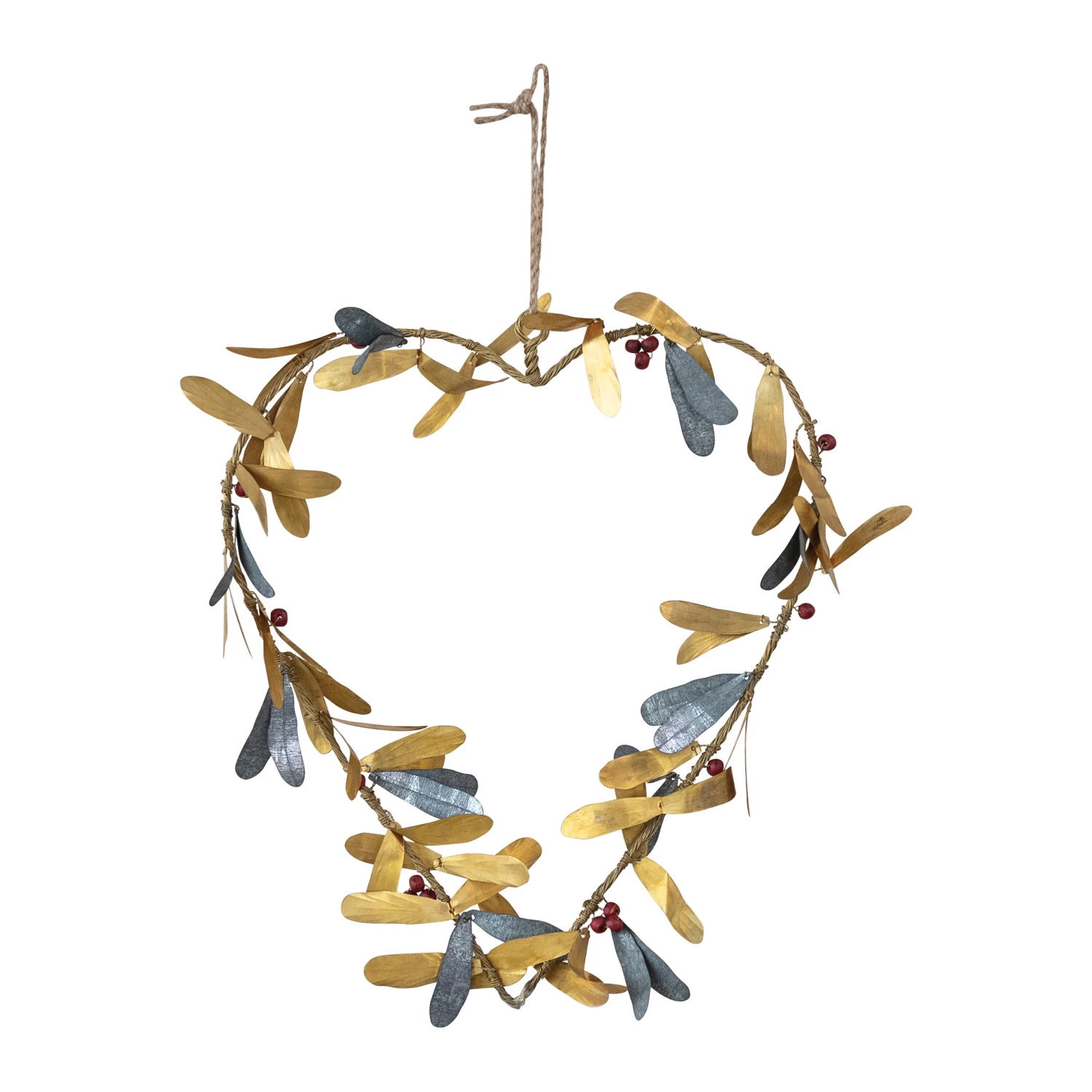 Brass & Galvanized Metal Leaves Heart Shaped Wreath