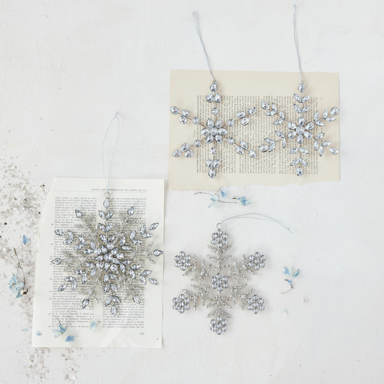Acrylic Jewel & Metal Snowflake Ornament, Silver Finish, 2 Styles