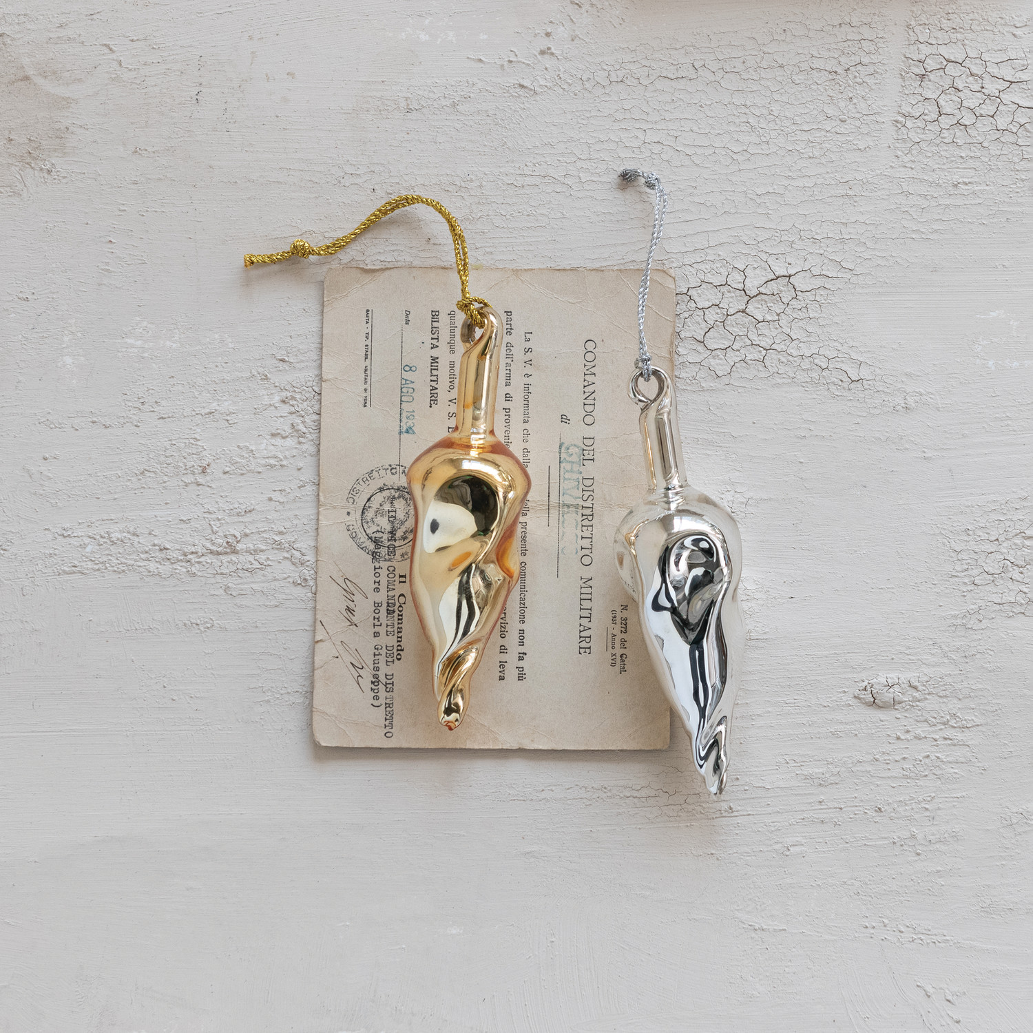 Catalog Name: 6"H Mercury Glass Organic Shaped Ornament, 2 Colors