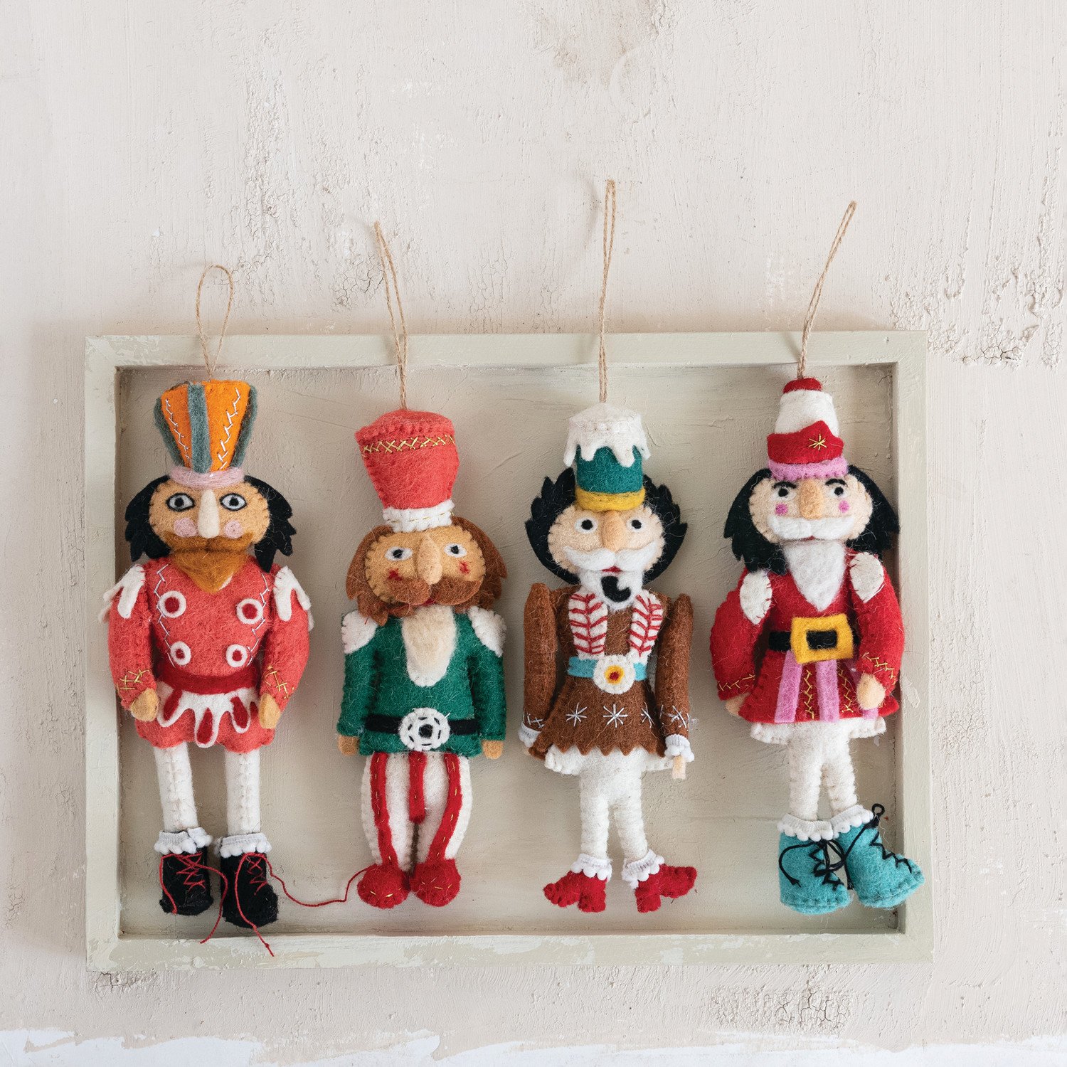 9"H - 9-1/2"H Handmade Wool Felt Nutcracker Ornament, 4 Styles