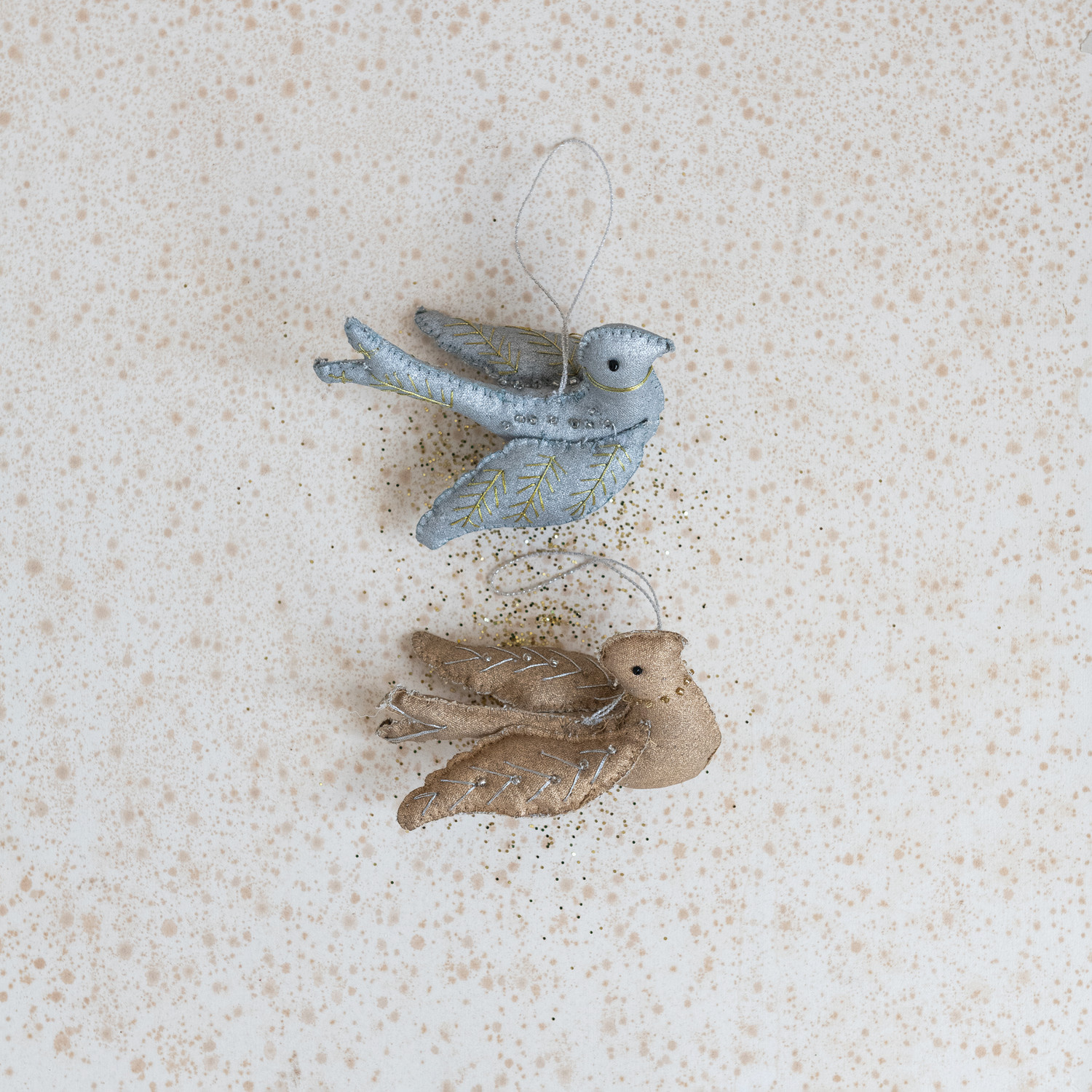 Catalog Name: 5"L Handmade Painted Canvas Bird Ornament w/ Metallic Thread Embroidery & Beads, 2 Styles