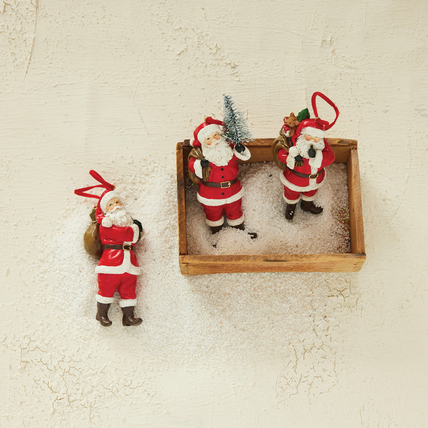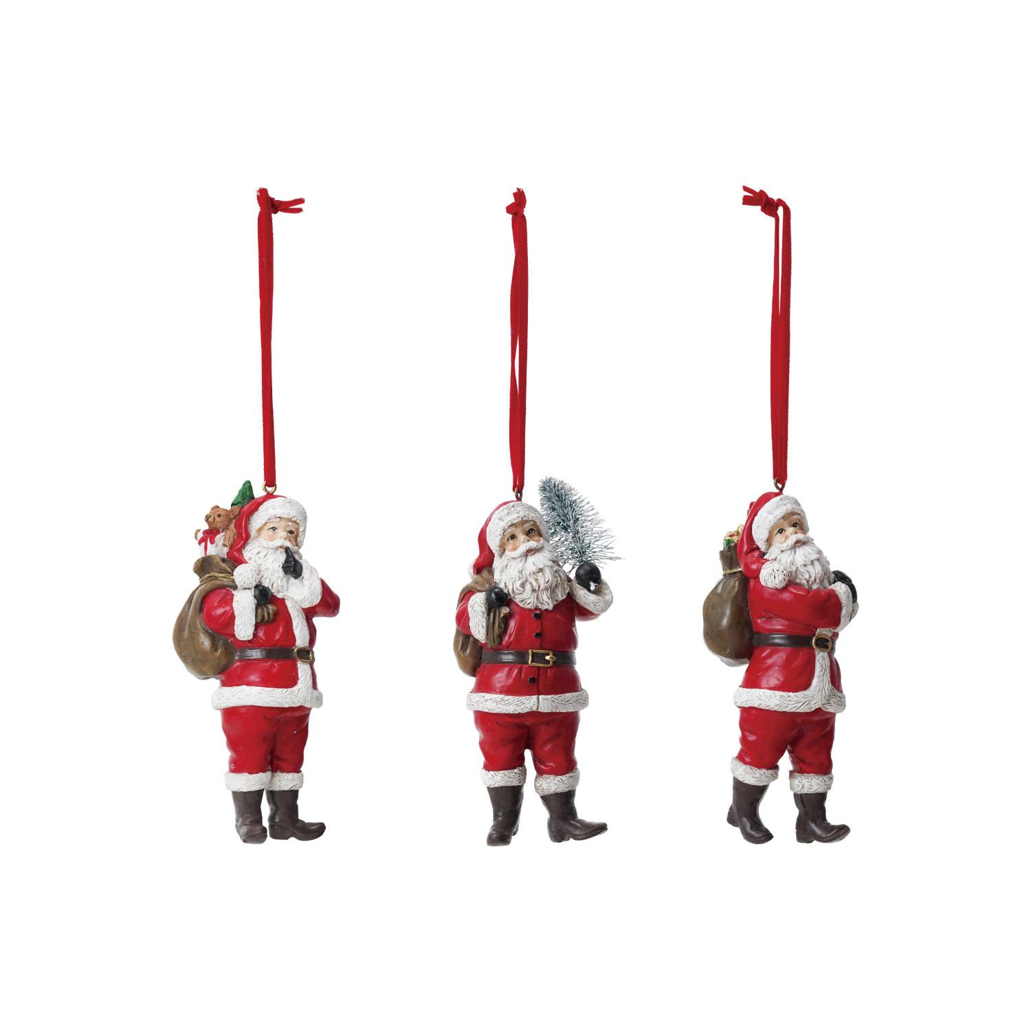 4-1/2"H Resin Santa Ornament with Gifts/Tree/Sack, 3 Styles ©