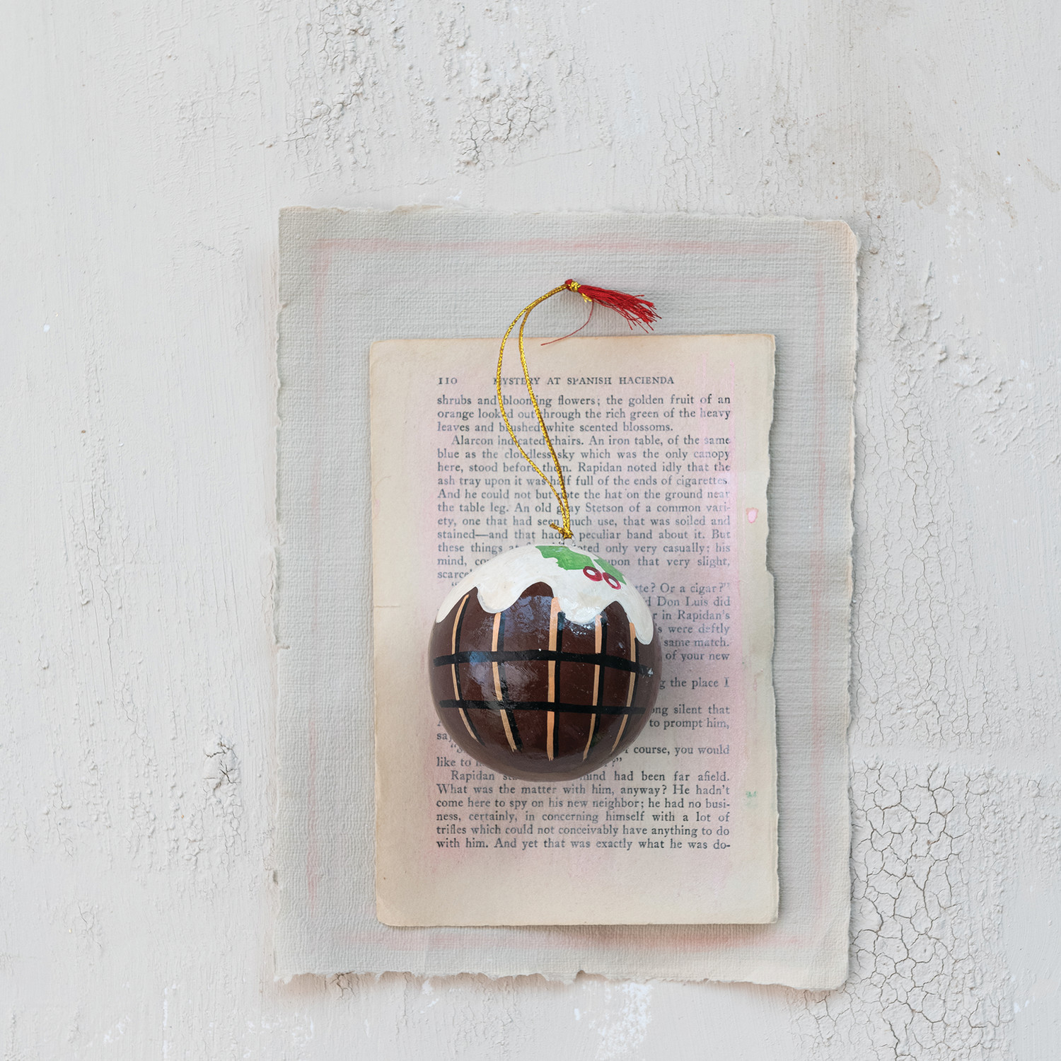3" Round Hand-Painted Paper Mache Sugar Plum Ornament with Design