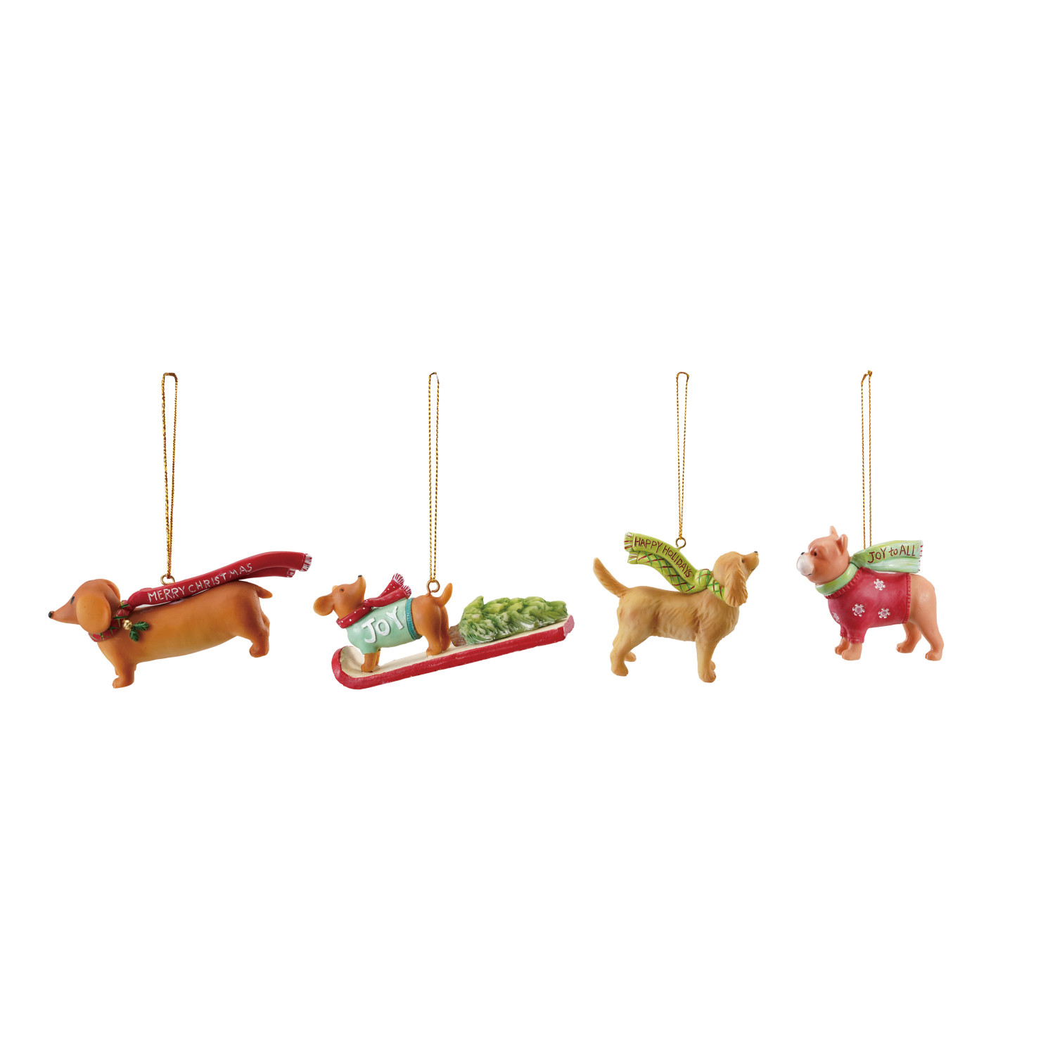 Catalog Name: 2-3/4"L - 4"L Resin Dog Shaped Ornament w/ Scarf & Saying, Multi Color, 4 Styles ©