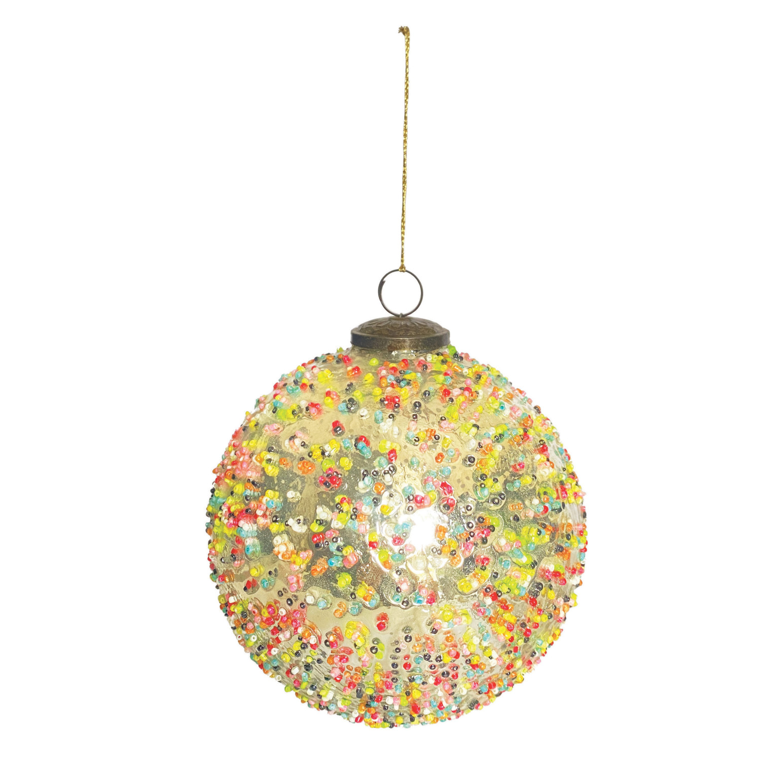 Catalog Name: 6" Round Mercury Glass Ball Ornament w/ Confetti Beads, Multi Color
