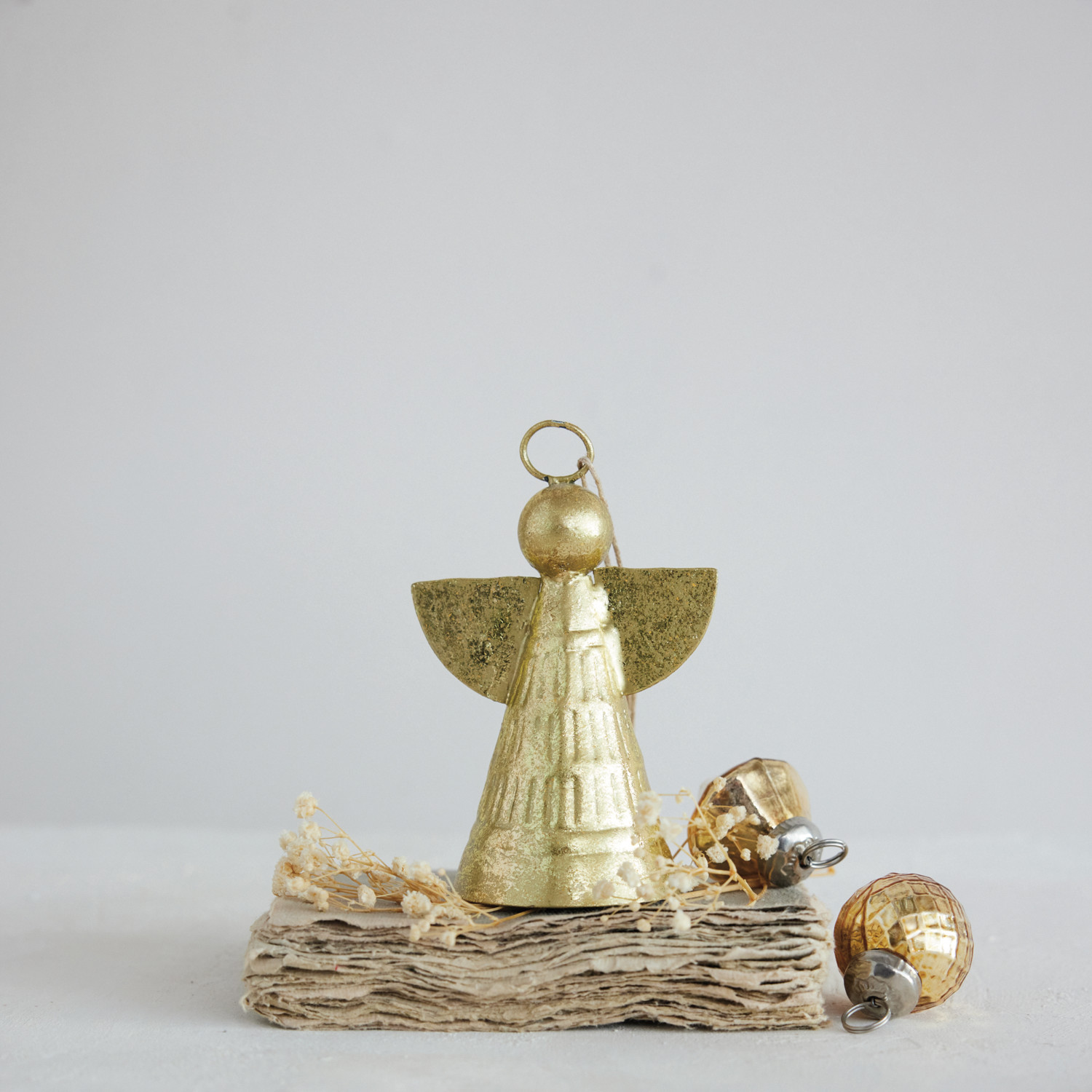 Metal Angel Ornament, Gold Finish