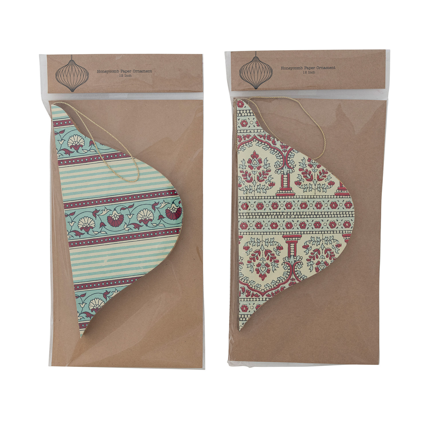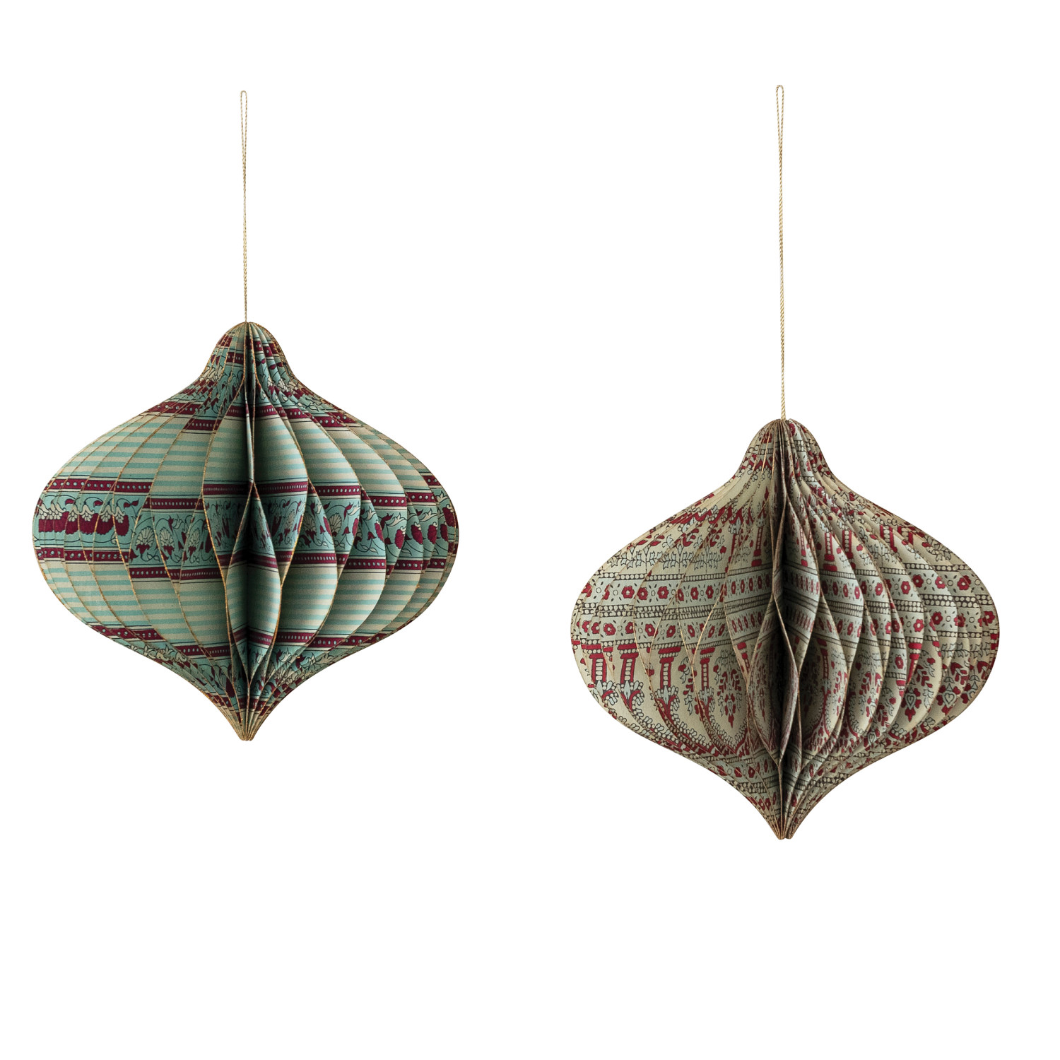 Catalog Name: 12"H Handmade Recycled Block Printed Paper Folding Honeycomb Finial Ornament w/ Vintage Pattern, 2 Styles