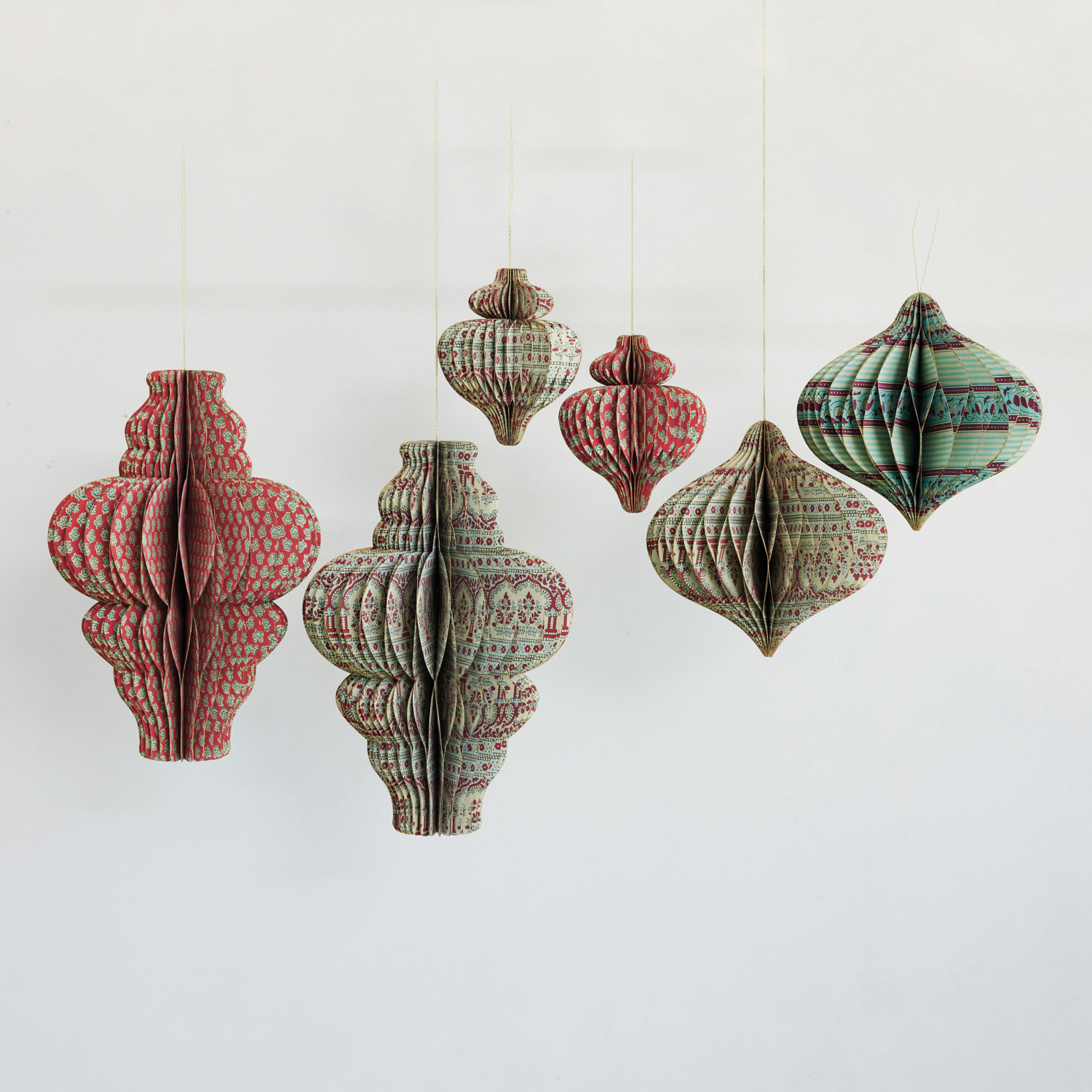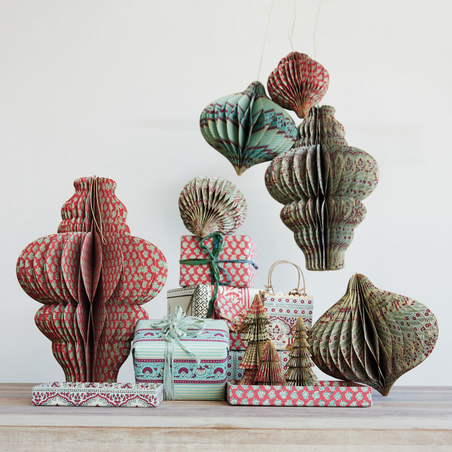 Handmade Recycled Block Printed Paper Folding Honeycomb Finial Ornament, 2 Styles