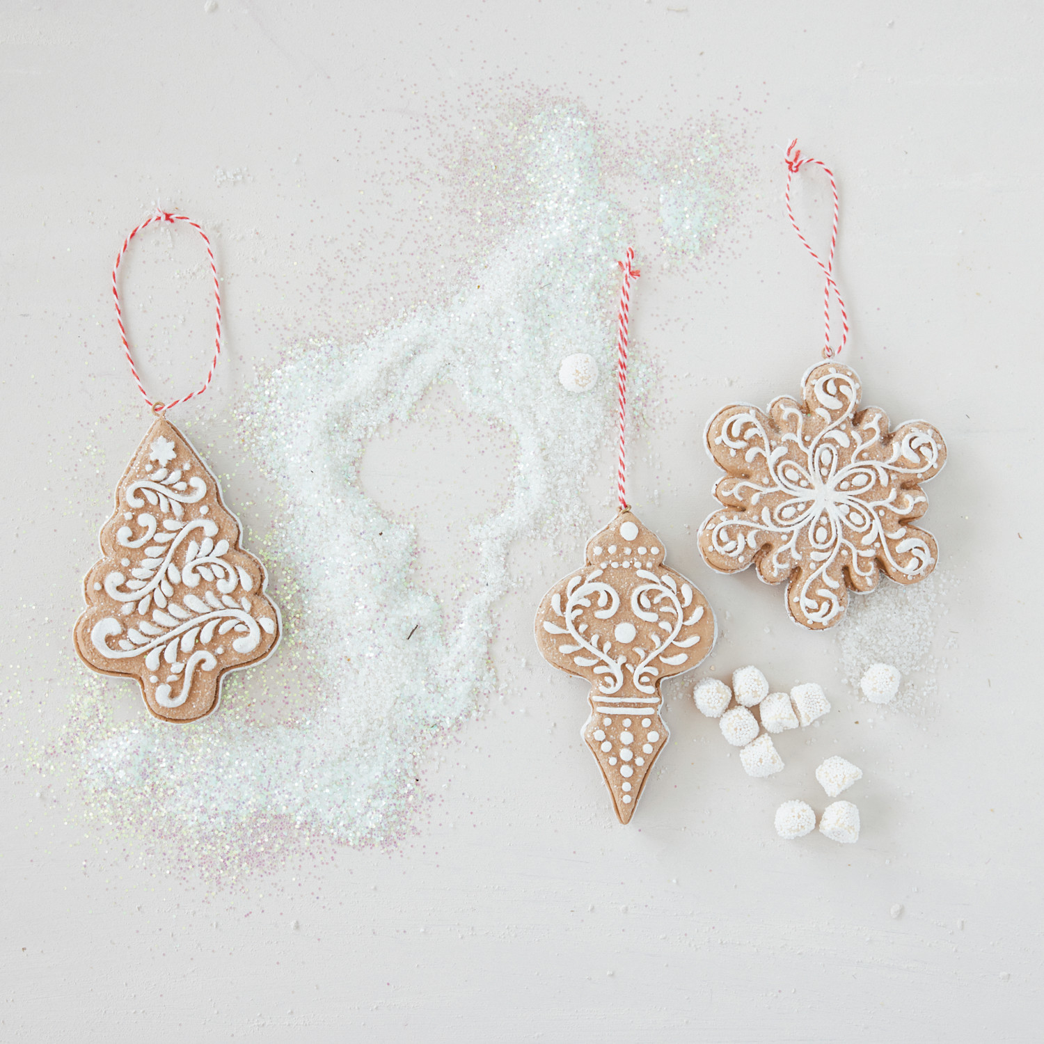 Resin Gingerbread Cookie Shaped Ornament with Glitter, Brown & White, 3 Styles