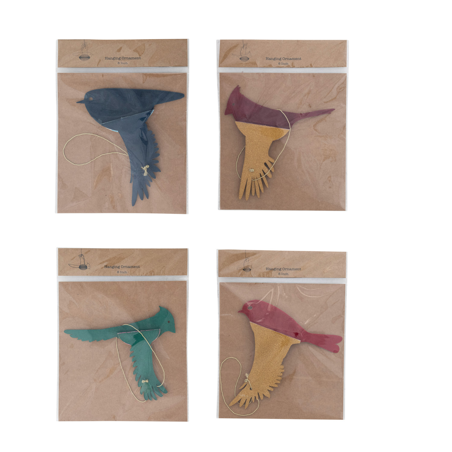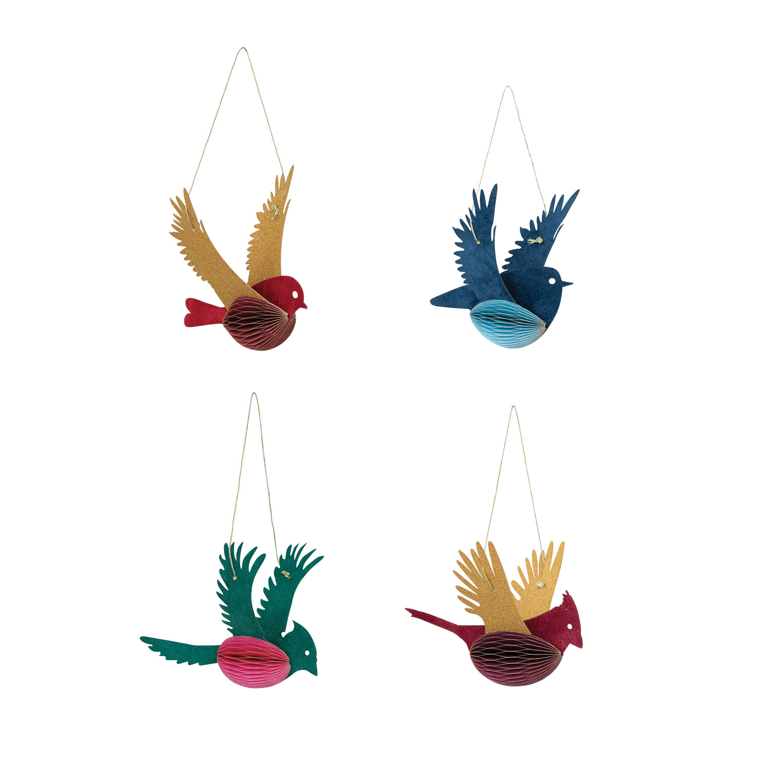 Catalog Name: 5"H Handmade Recycled Paper Folding Honeycomb Bird Ornament w/ Glitter, Multi Color, 4 Styles