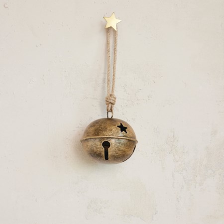 Hanging Metal Jingle Bell Cluster with White & Gold Cord, Gold Finish