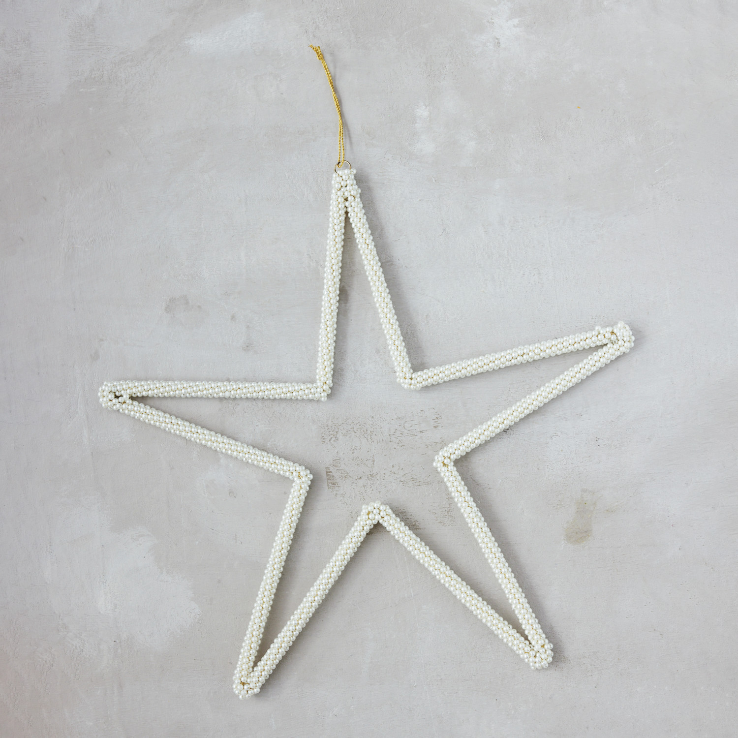 Catalog Name: 19-1/2"H Oversized Metal & Faux Pearl Beaded Star Ornament, Cream Color