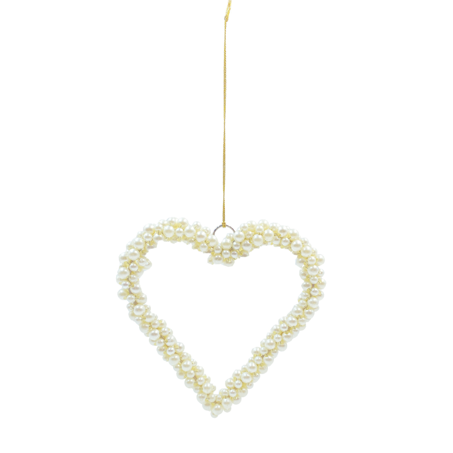 Catalog Name: 5-1/2"H Metal & Faux Pearl Beaded Heart Ornament, Cream Color