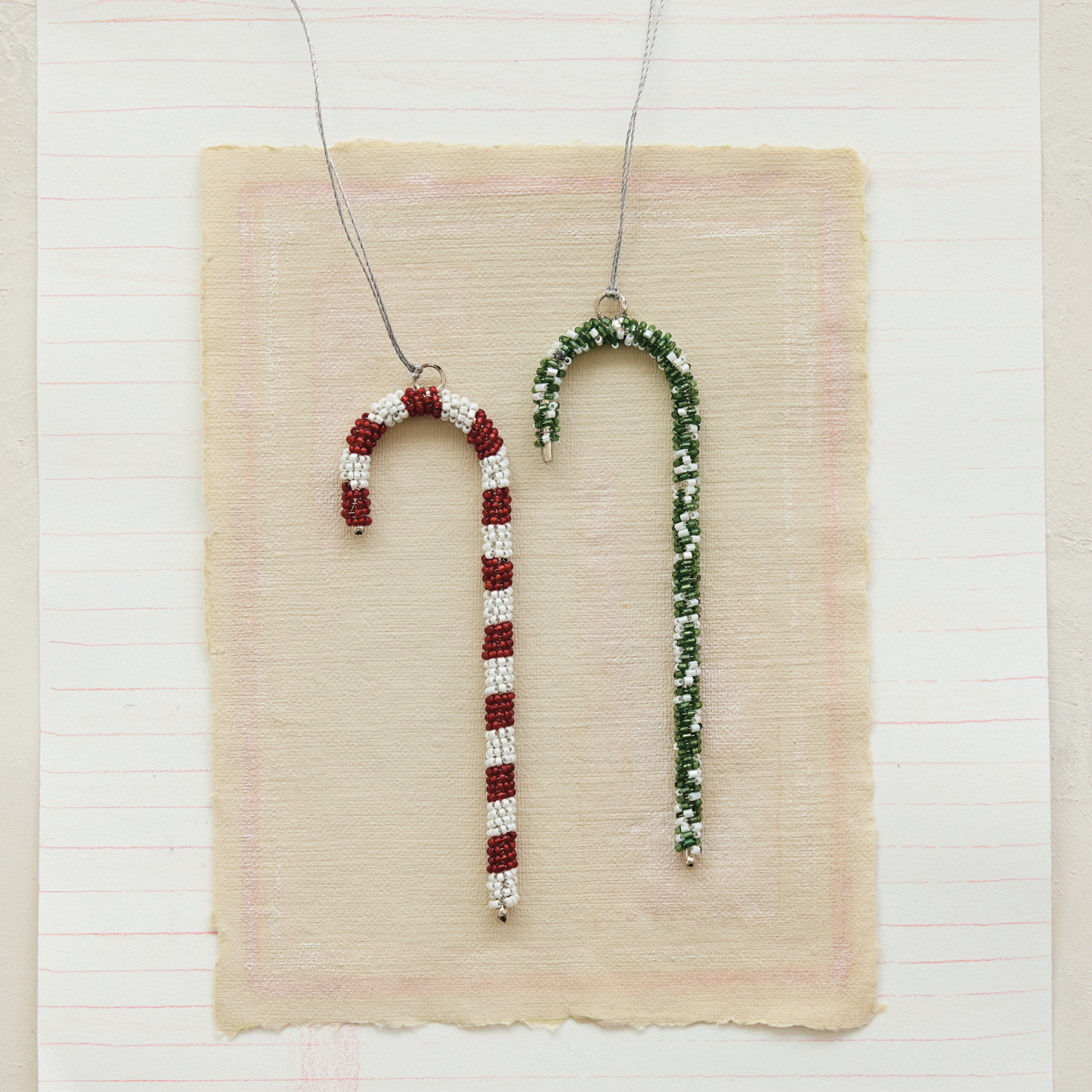 Glass Beaded Metal Candy Cane Ornament, 2 Styles