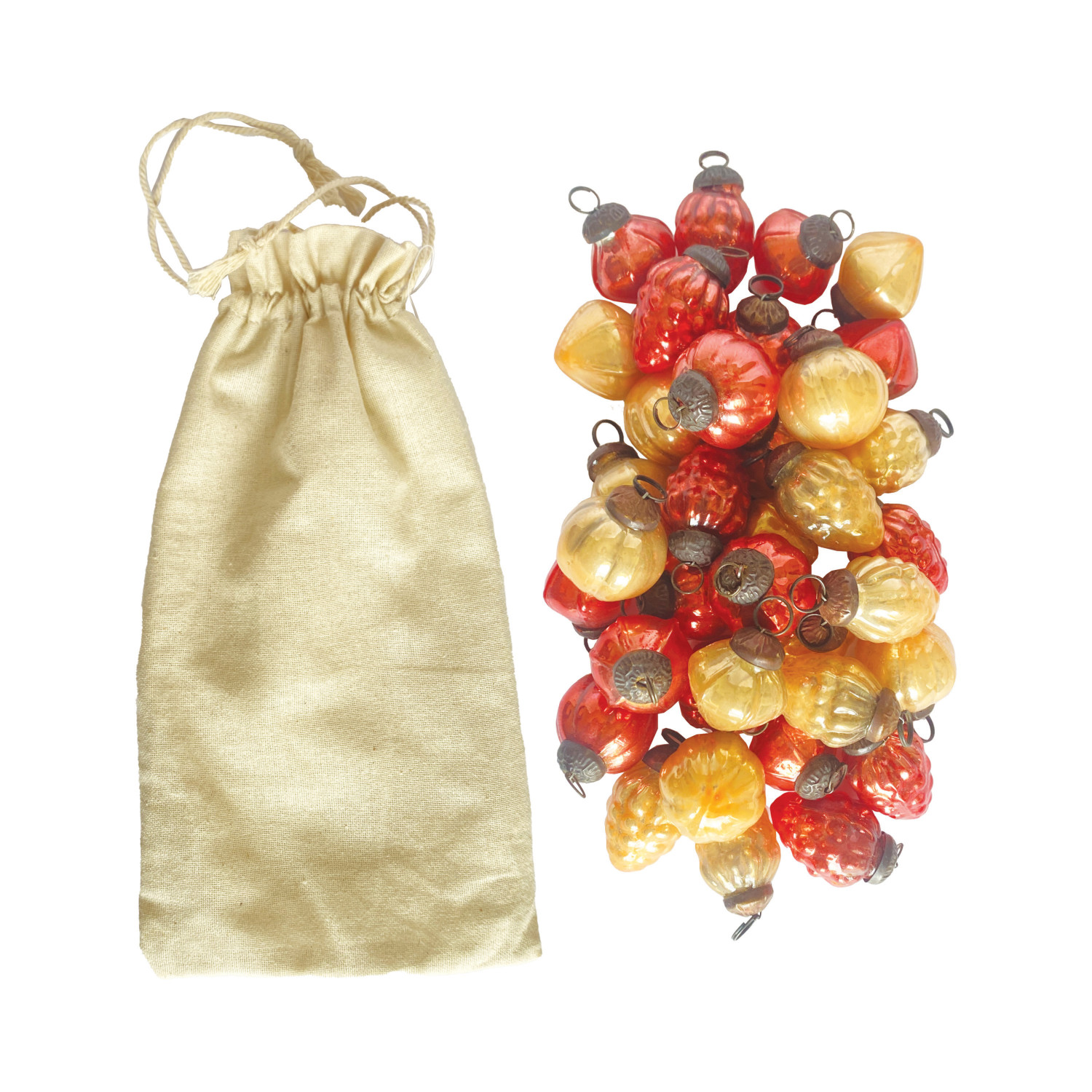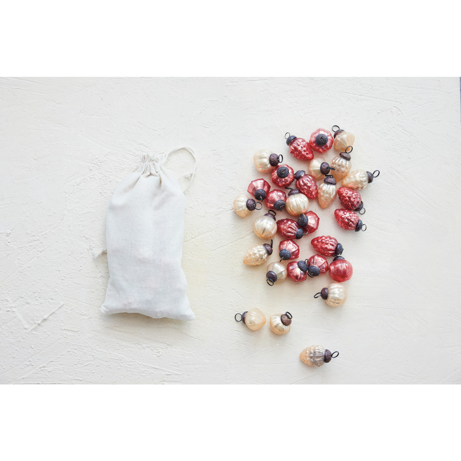 Embossed Mercury Glass Ornaments in Muslin Bag, Berry & Blush Color, Set of 36