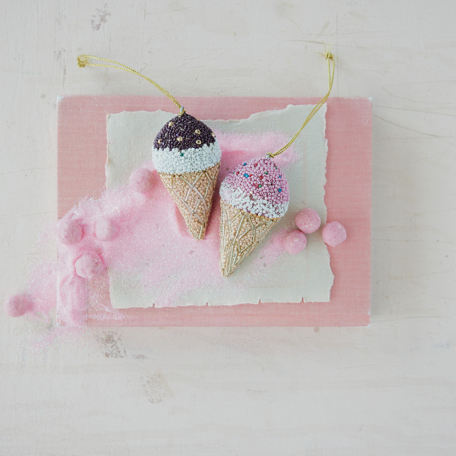 Handmade Plastic & Glass Beaded Ice Cream Cone Ornament, 2 Styles