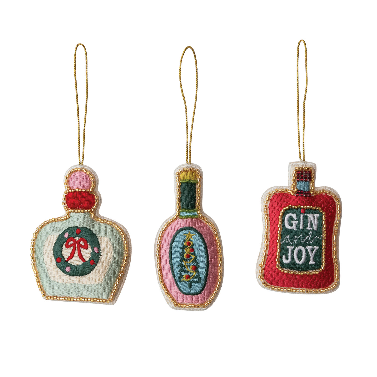 Handmade Fabric Embroidered Bottle Ornament with Beads, 3 Styles ©