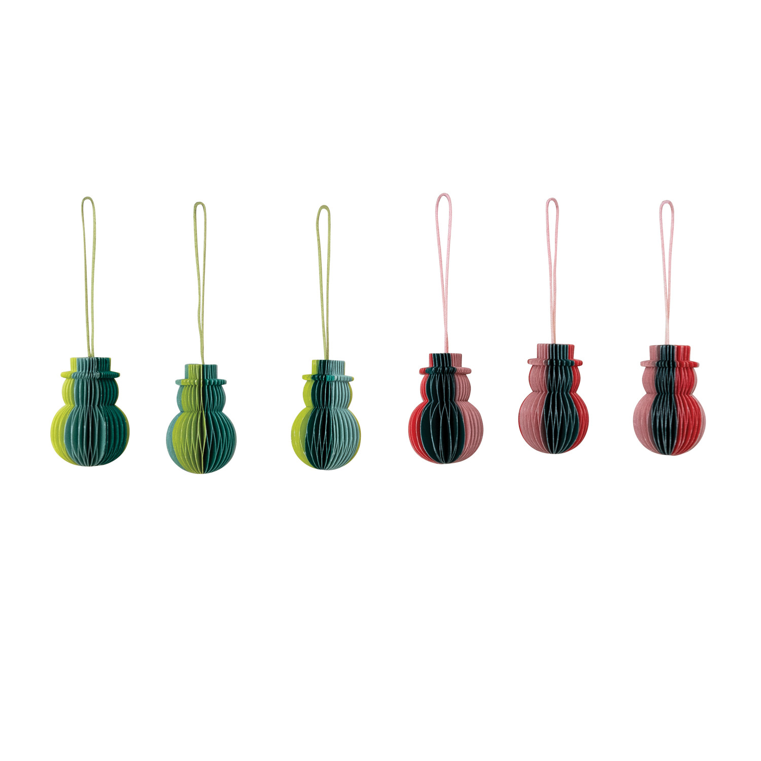 Catalog Name: 2"H Handmade Recycled Paper Folding Honeycomb Snowman Ornaments, Multi Color, Boxed Set of 6