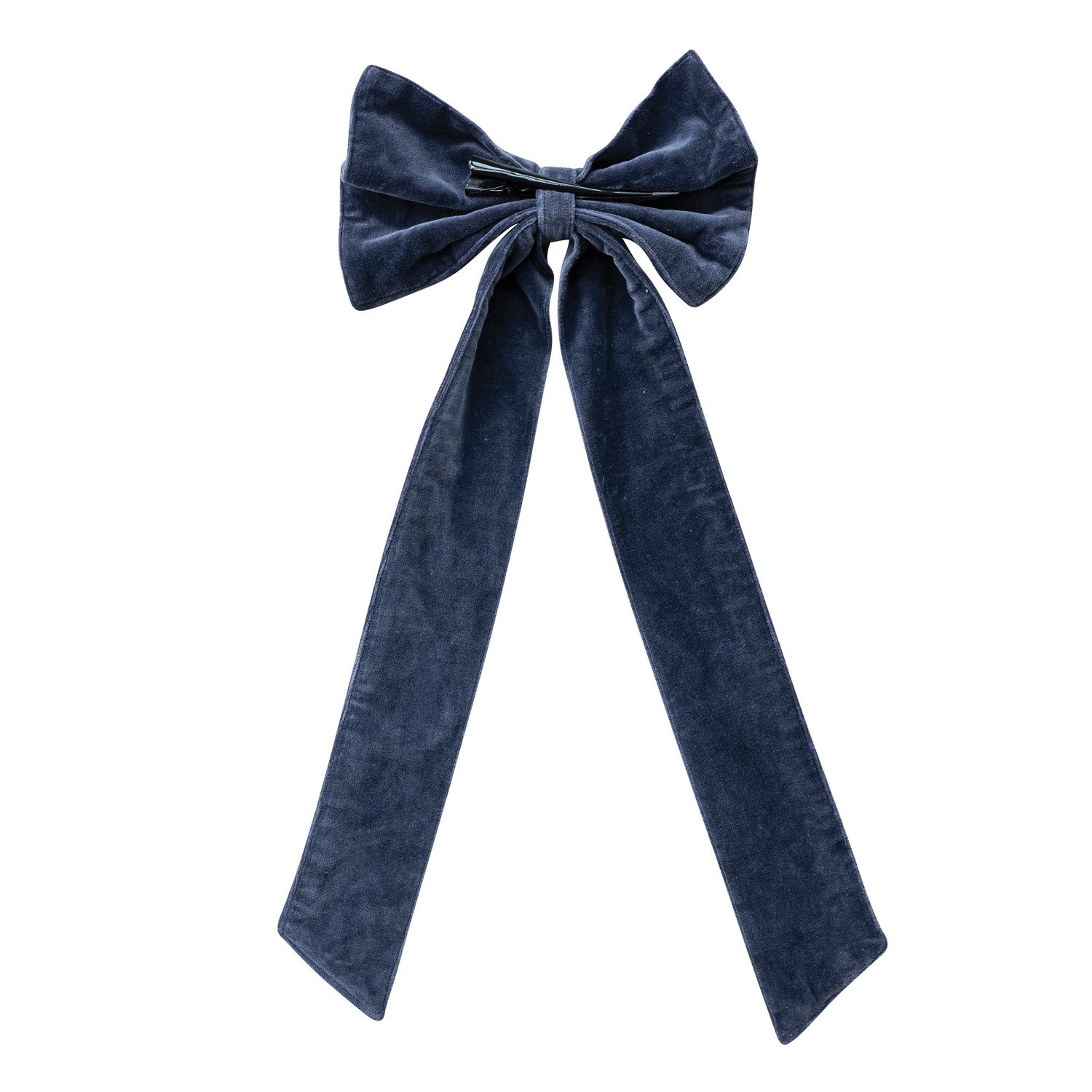 Catalog Name: 10"W x 21"H Cotton Velvet Clip-on Bow, Navy Color