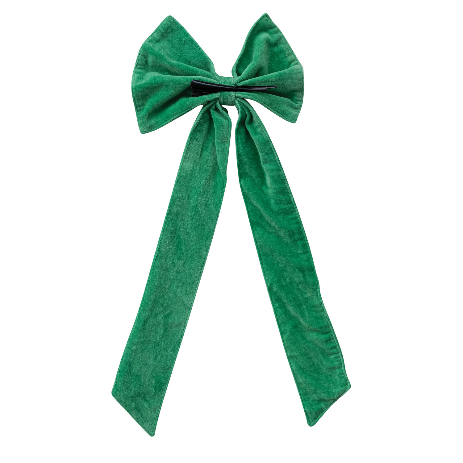 Catalog Name: 10"W x 21"H Cotton Velvet Clip-on Bow, Kelly Green