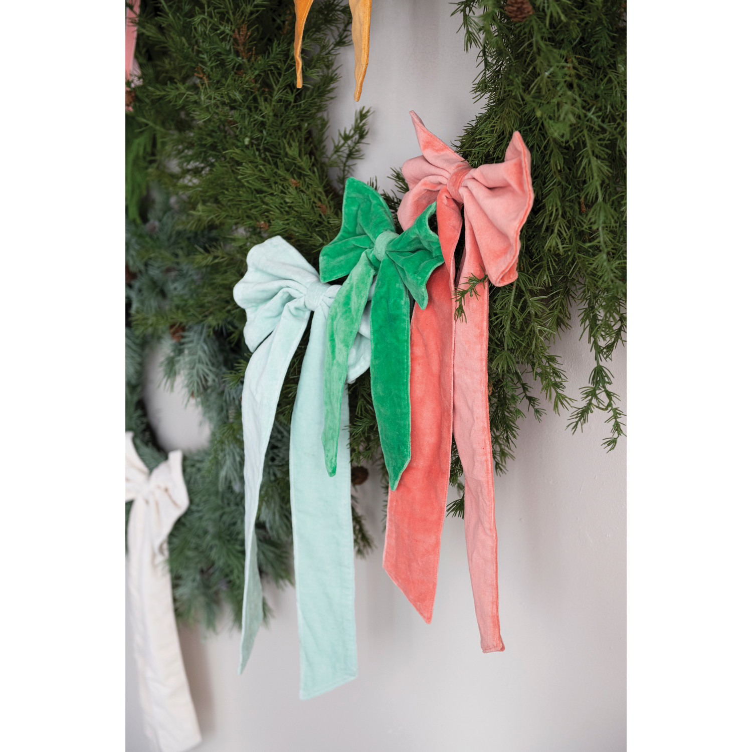 Catalog Name: 10"W x 21"H Cotton Velvet Clip-on Bow, Mint Color