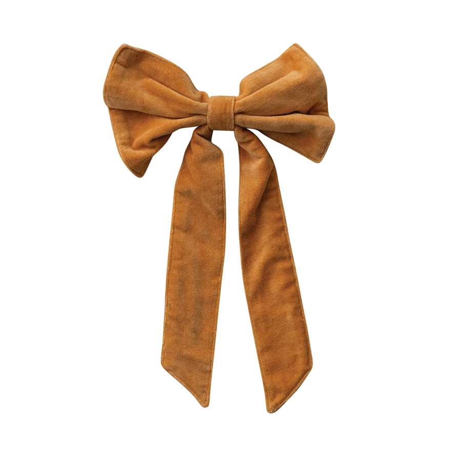 Catalog Name: 8"W x 13"H Cotton Velvet Clip-on Bow, Mustard Color