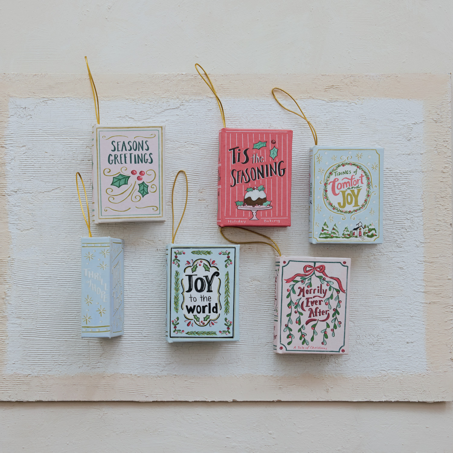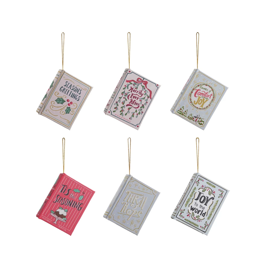 Catalog Name: 3-3/4"L MDF & Canvas Book Ornament, Multi Color, 6 Styles ©