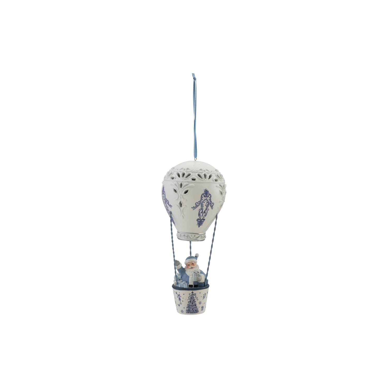 Resin Hot Air Balloon Ornament with Design, Santa, Gifts & Tree, White & Blue