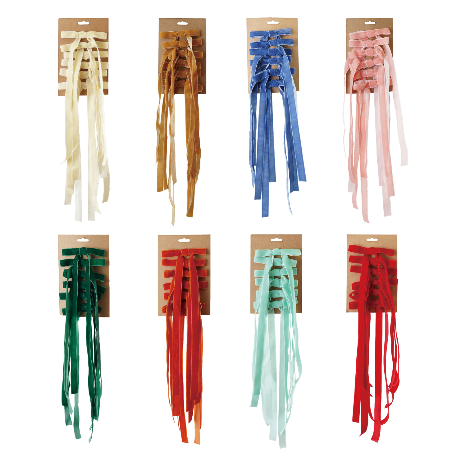 Catalog Name: 13-3/4"L Velvet Clip-on Bows, Set of 6, 8 Colors