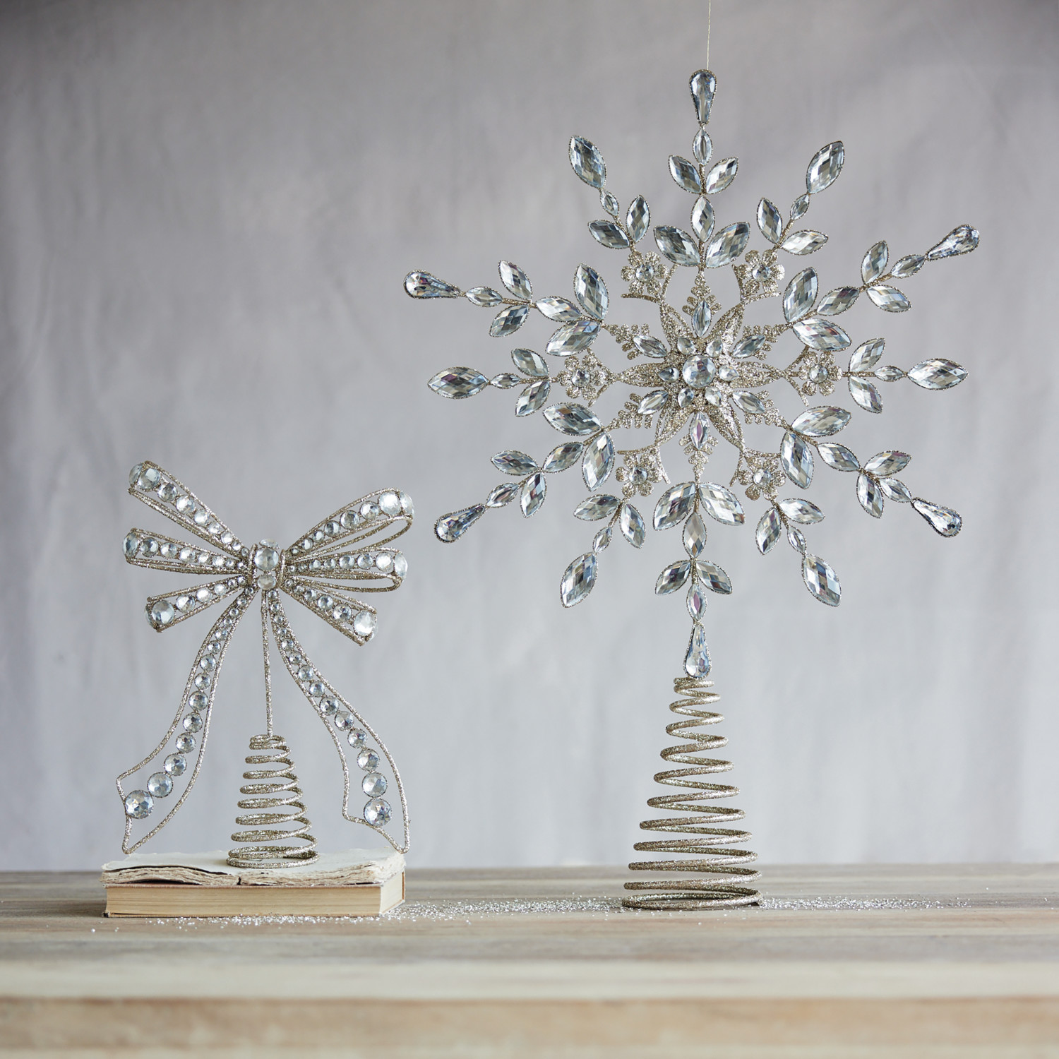 Metal Bow Tree Topper with Acrylic Jewels & Glitter