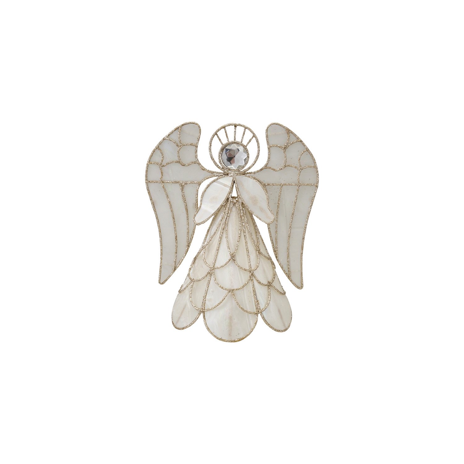 Catalog Name: 8"L x 5-1/2"W x 10-1/4"H Metal & Faux Capiz Angel Tree Topper w/ Gold Glitter & Acrylic Jewel