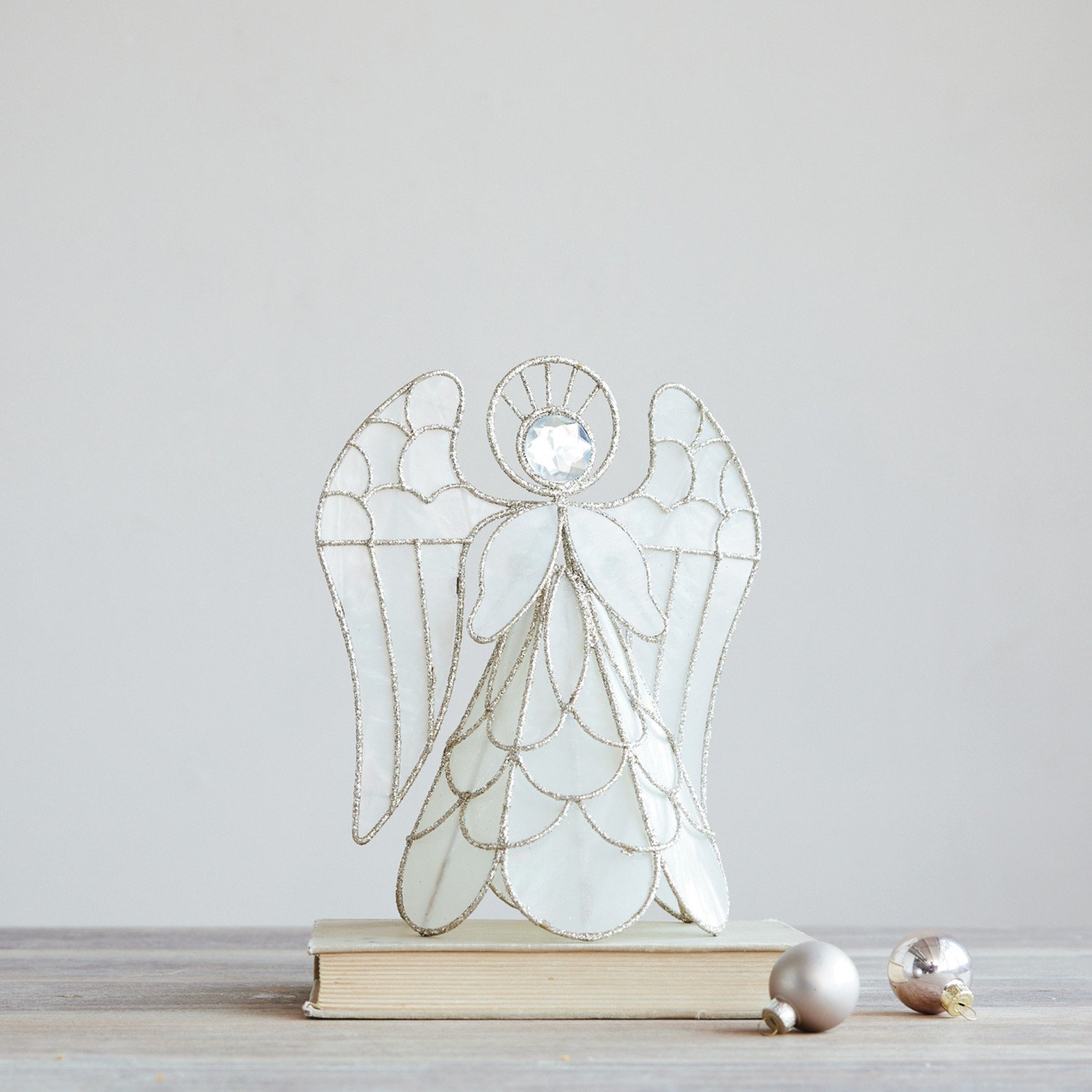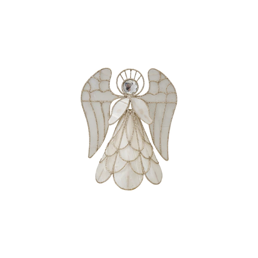 Metal & Faux Capiz Angel Tree Topper with Gold Glitter & Acrylic Jewel