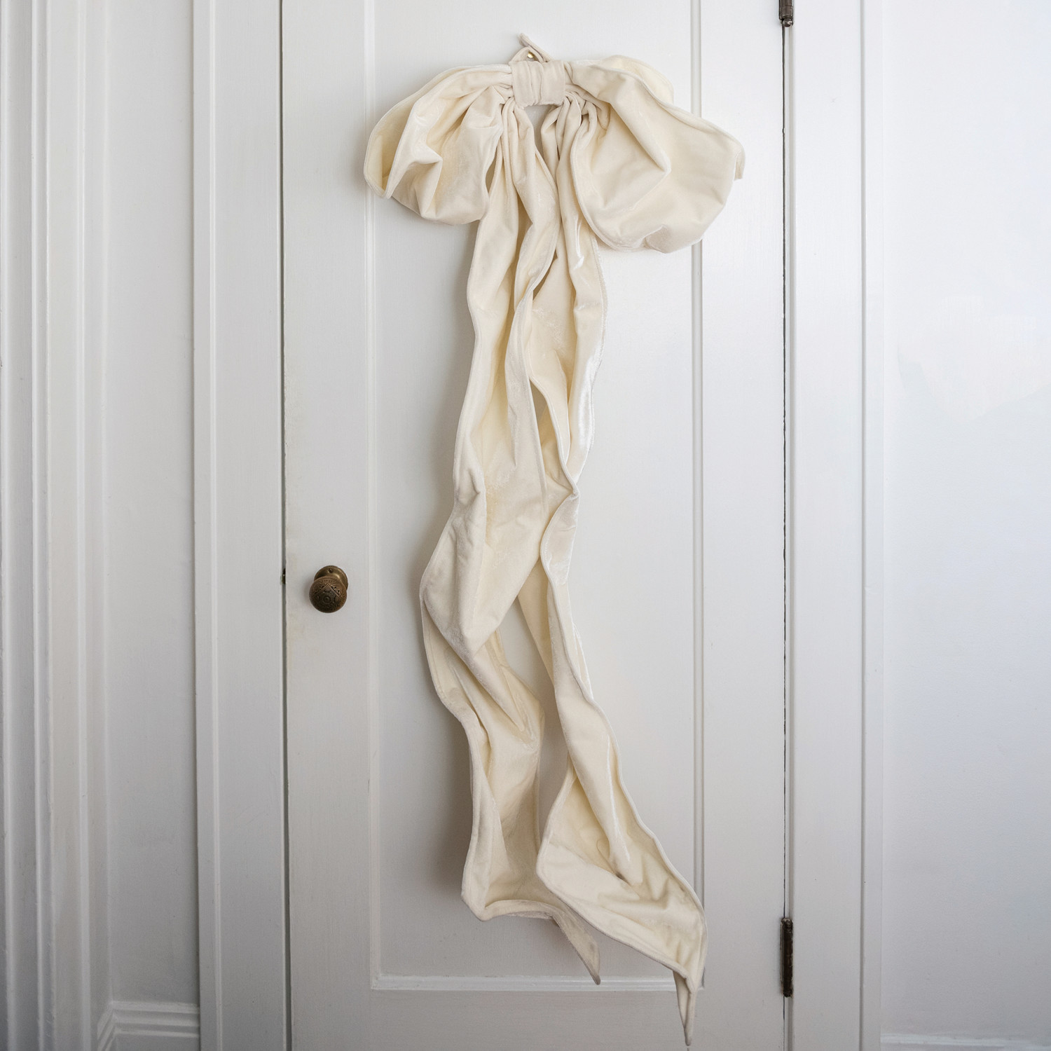 Catalog Name: 30"W x 59"H Oversized Fabric Velvet Bow w/ Velcro Closure, Cream Color