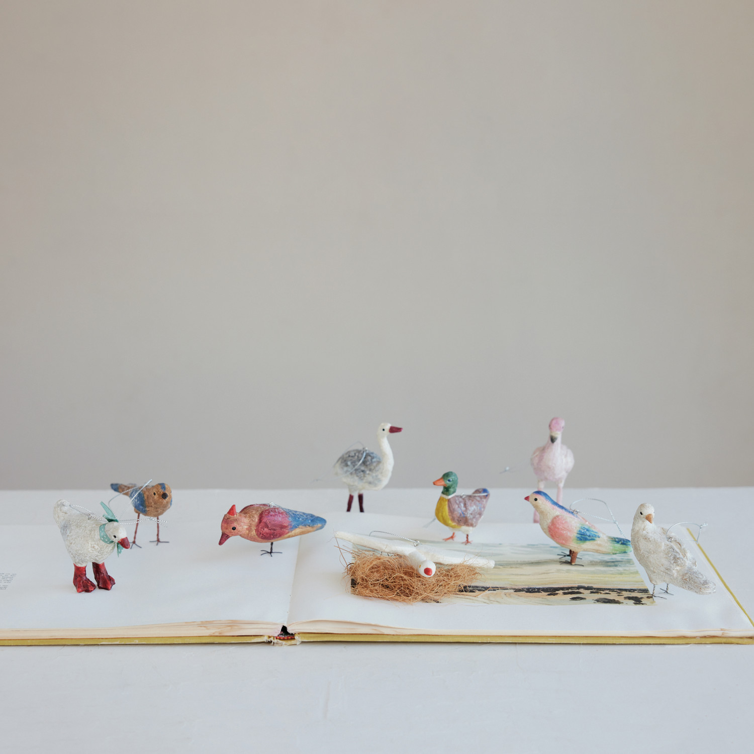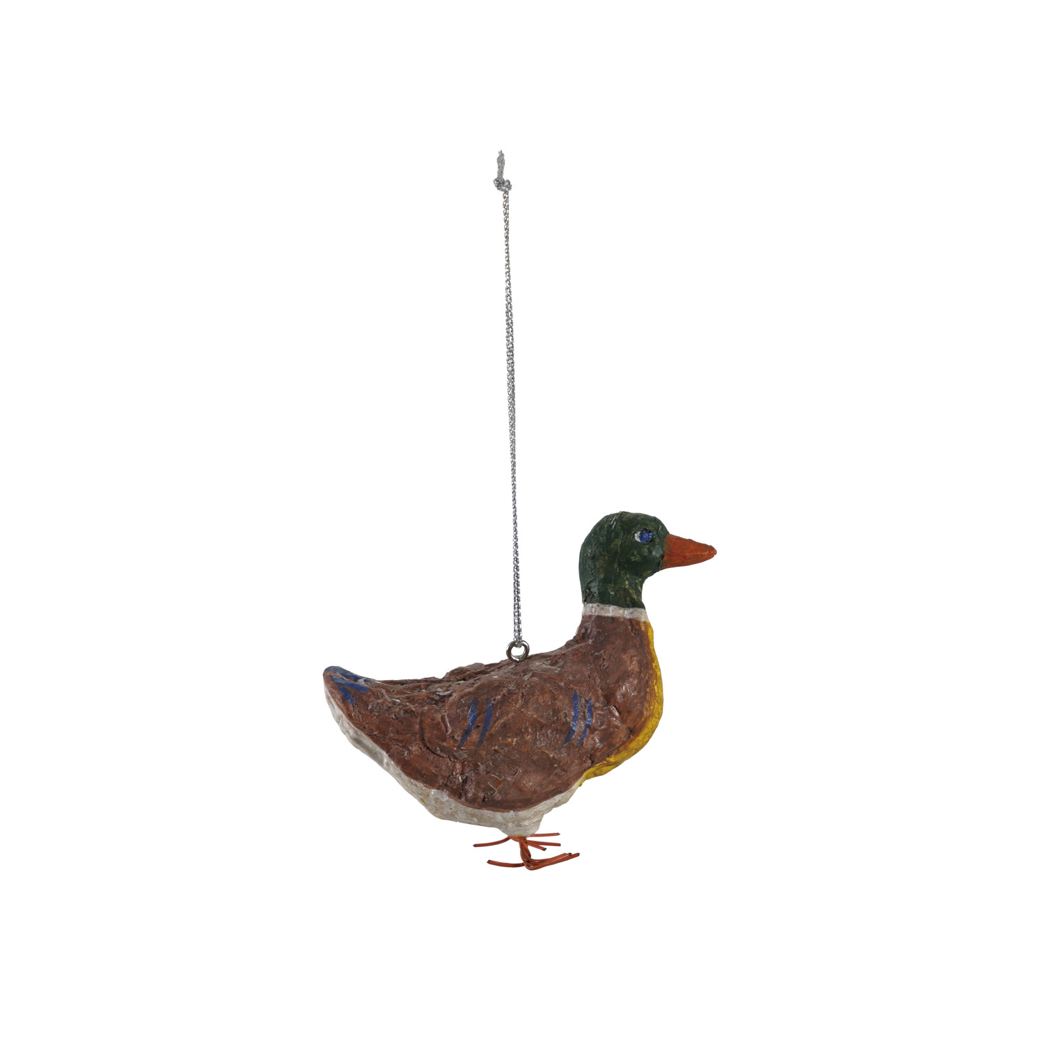 Catalog Name: 2-3/4"H Handmade Paper Mache Vintage Reproduction Mallard Ornament w/ Metal Wire Feet, Multi Color