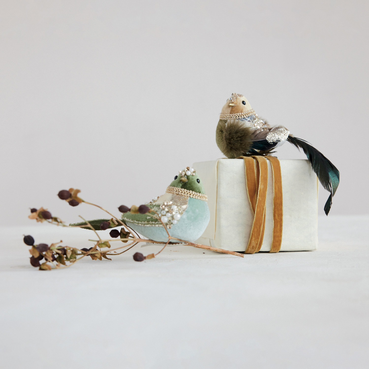 Catalog Name: 5"L Foam & Fabric Clip-on Bird Ornament w/ Feathers, Faux Pearls, Jewels & Glitter, 2 Styles