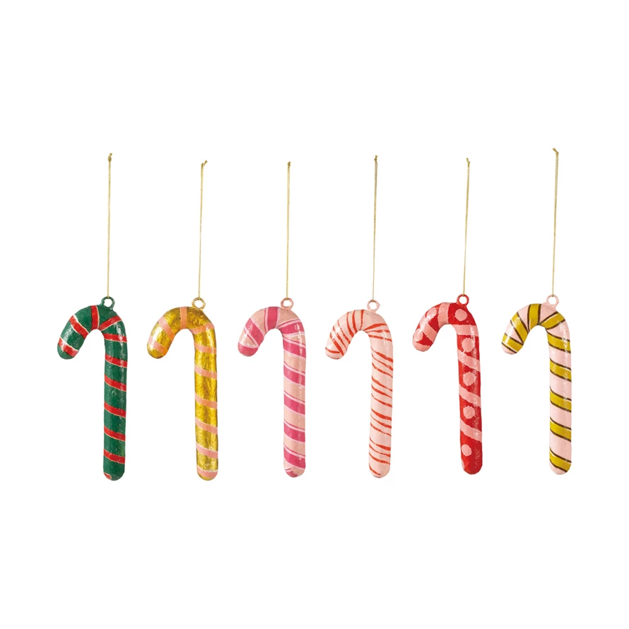 Metal & Paper Mache Candy Cane Ornament, 6 Styles